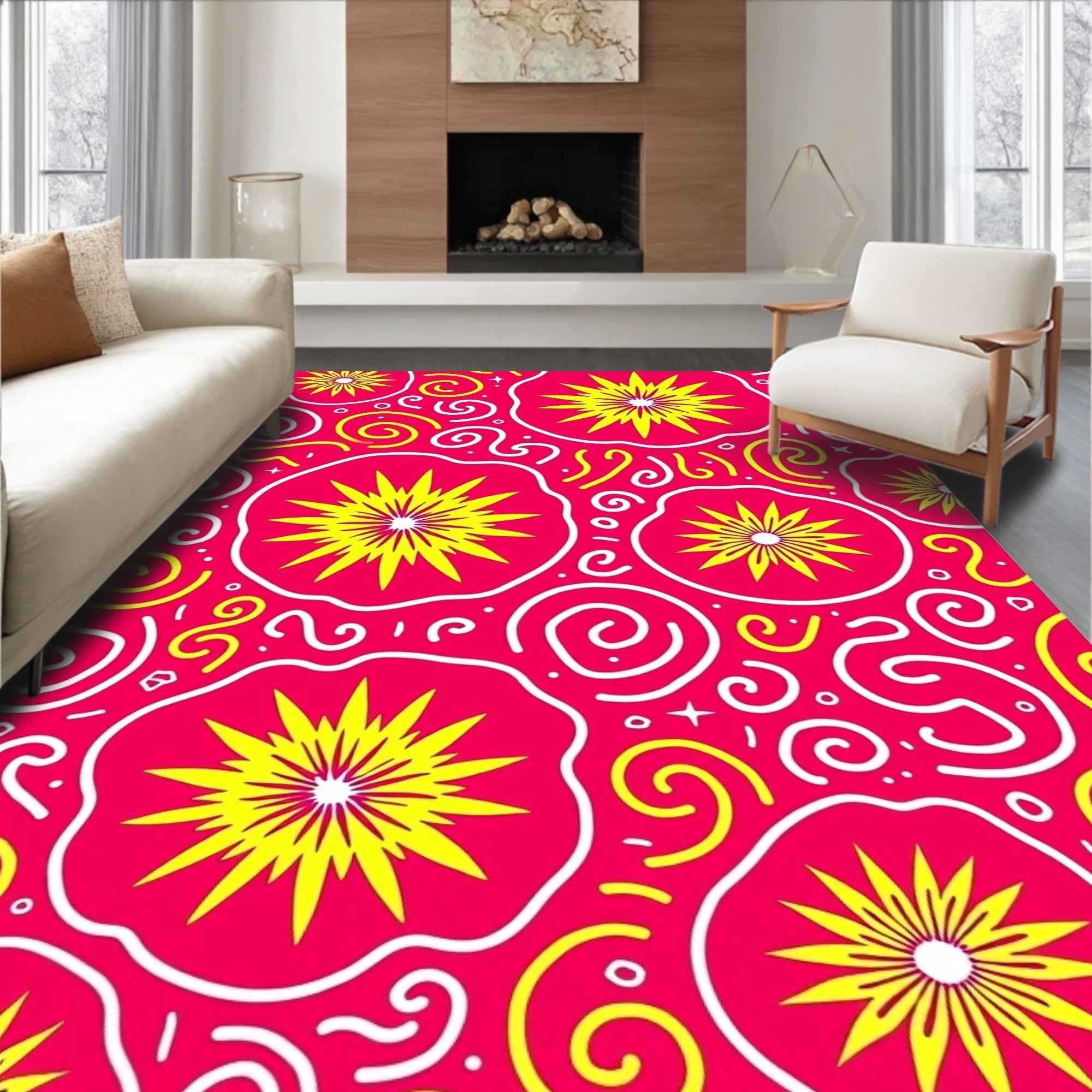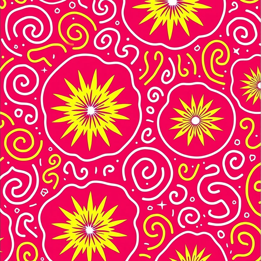 Modern Abstract Starburst Motif with Whimsical Swirl Details(Pink)
