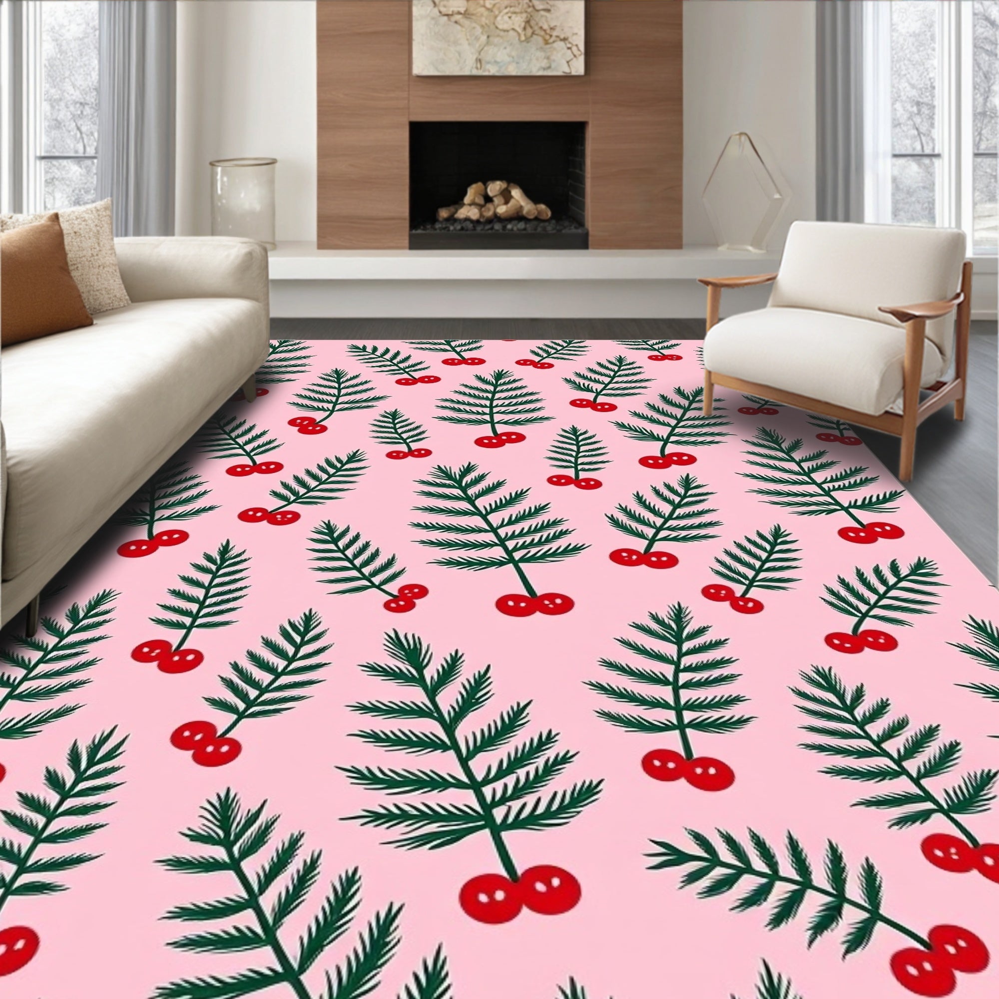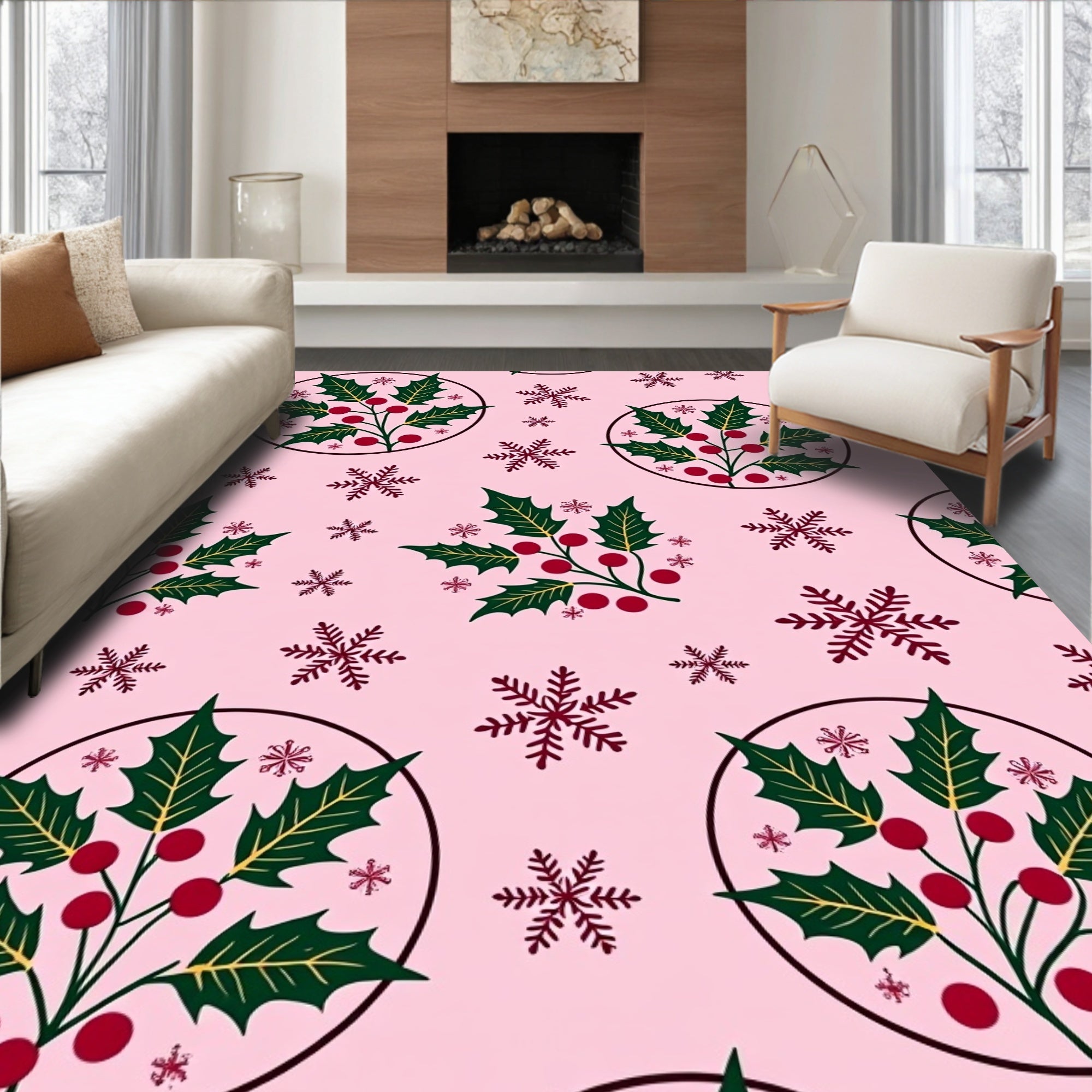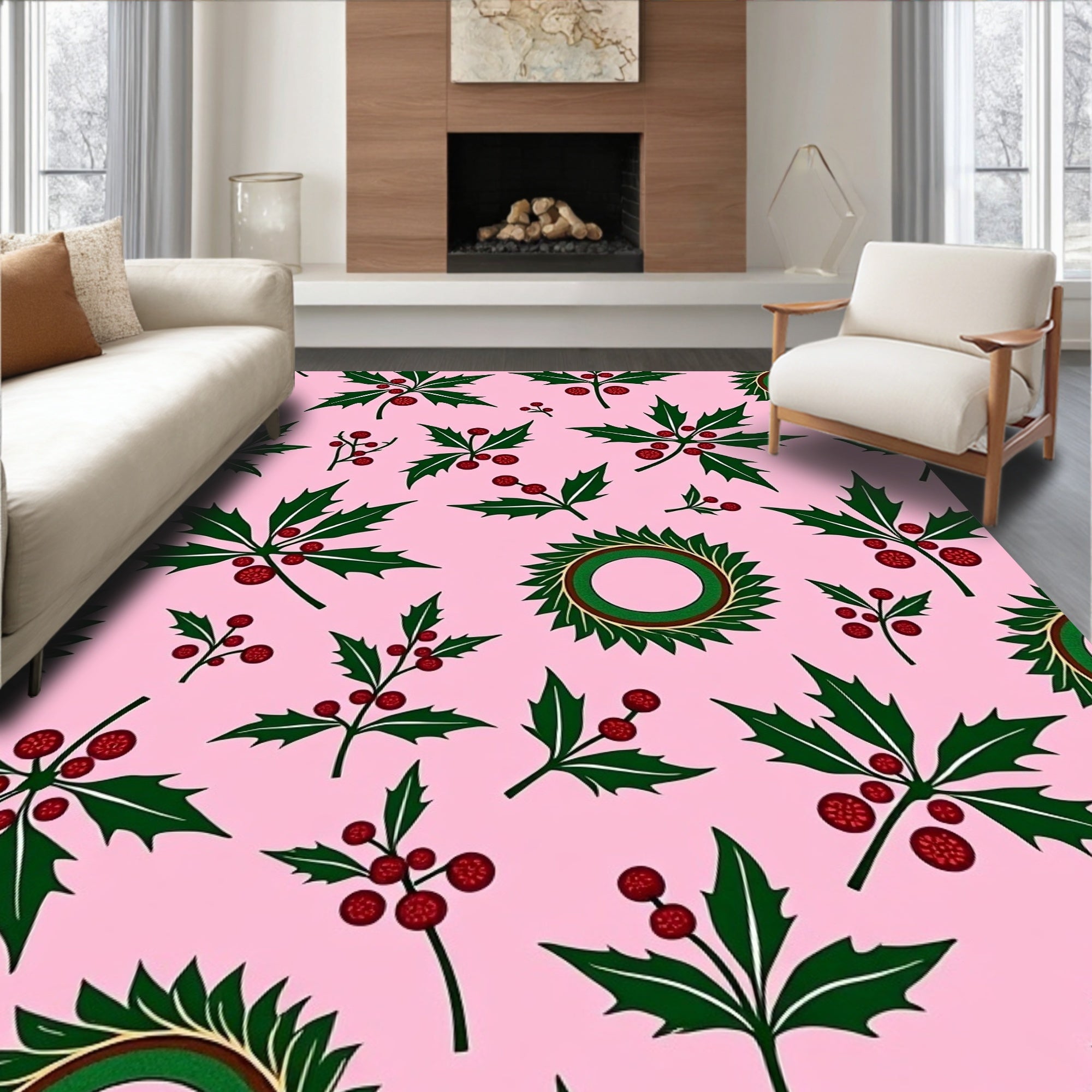 Festive Holly Berry Wreath Decorative Floor Covering(Pink)