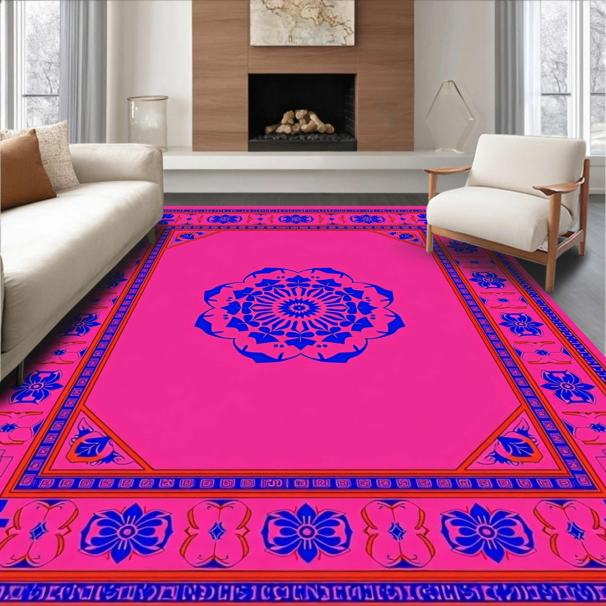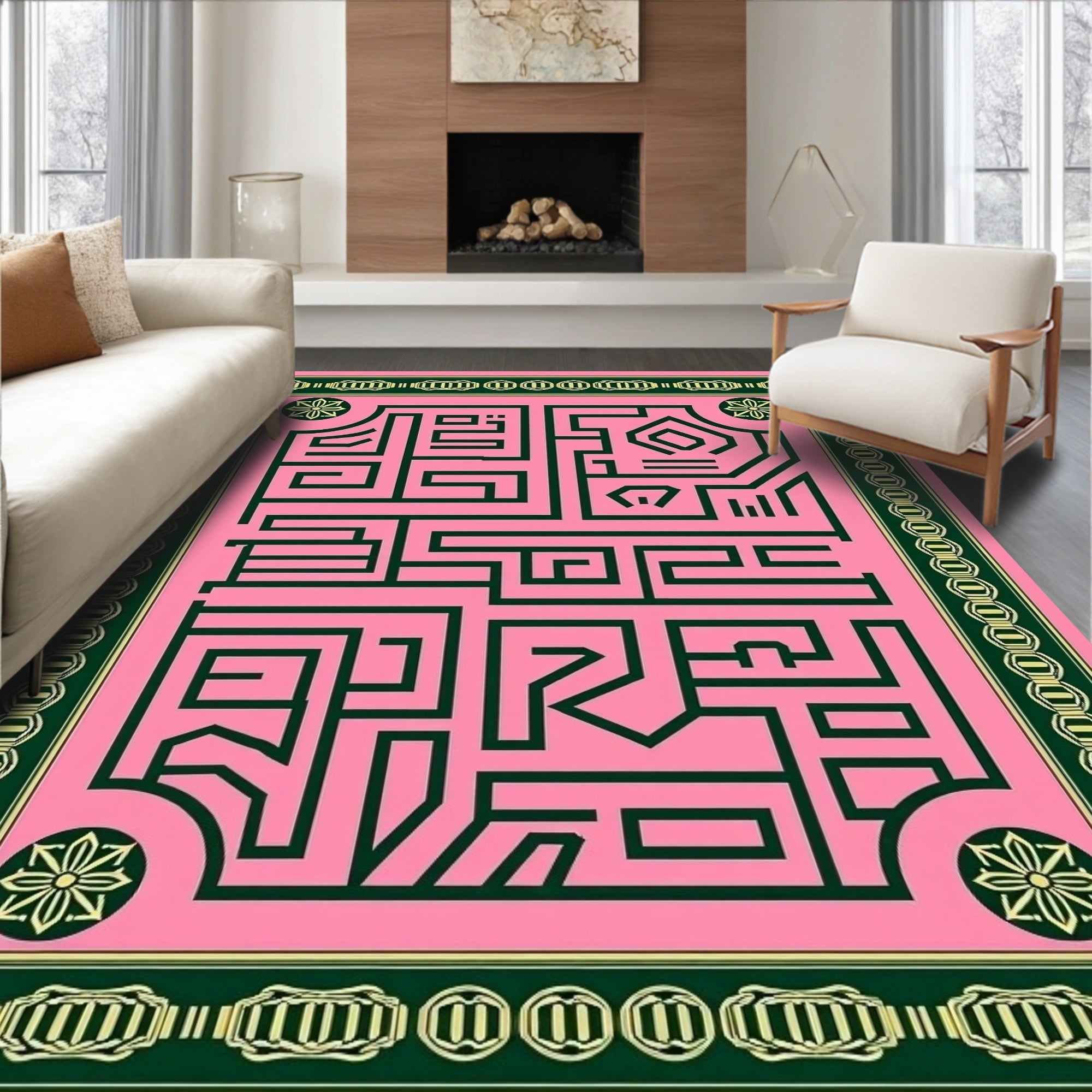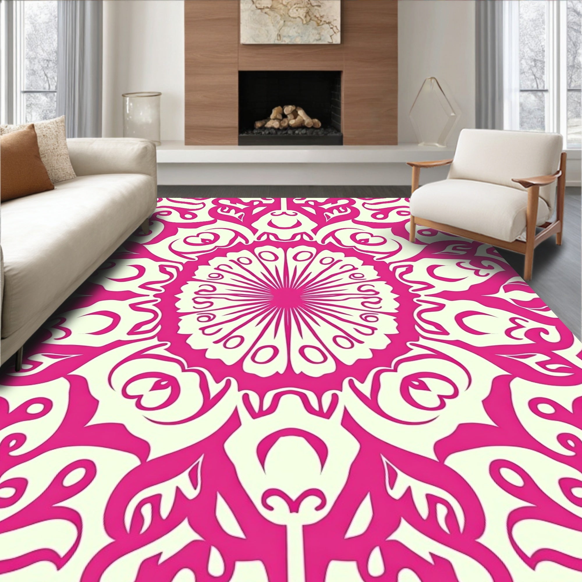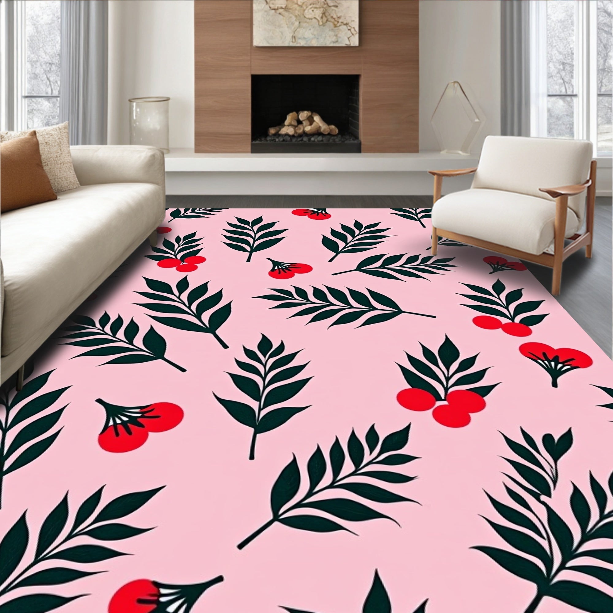 Festive Holly Berry Wreath Decorative Floor Covering(Pink)
