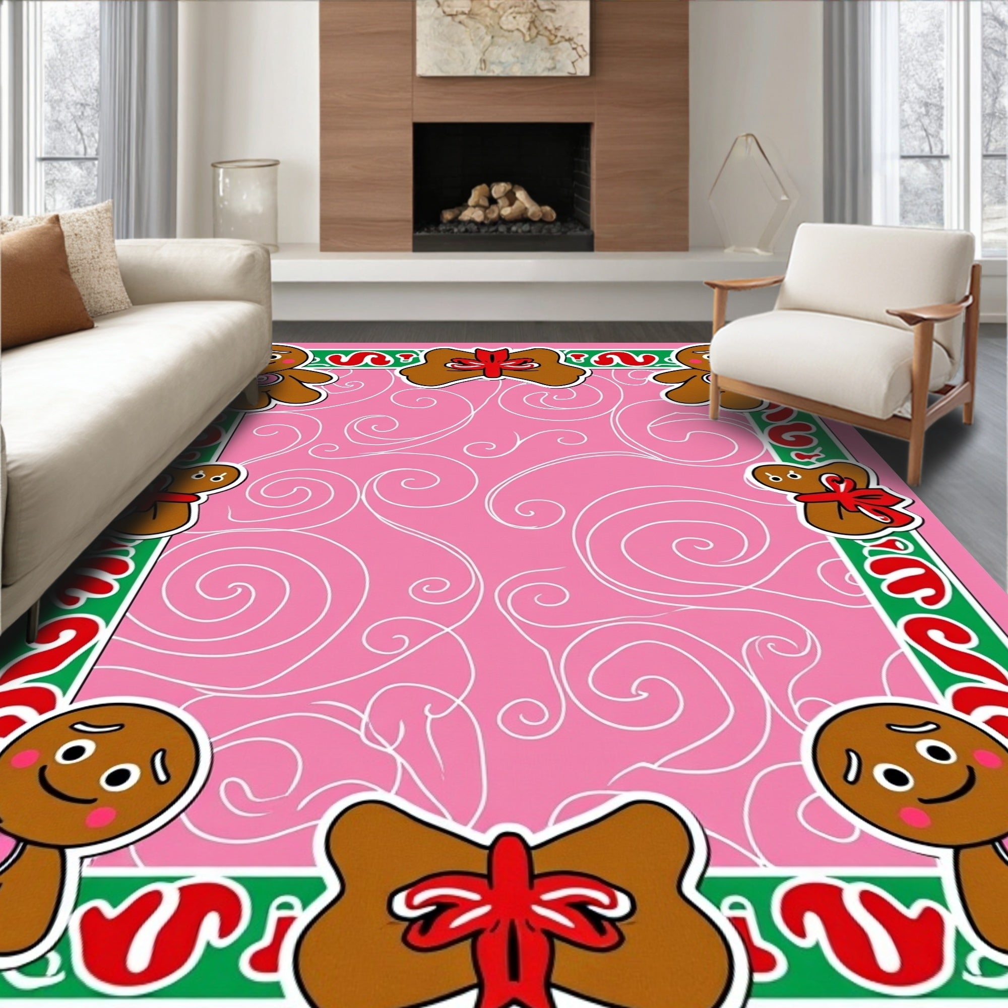 Christmas Baking Theme Duo Sweet Treat Floor Covering(Pink)
