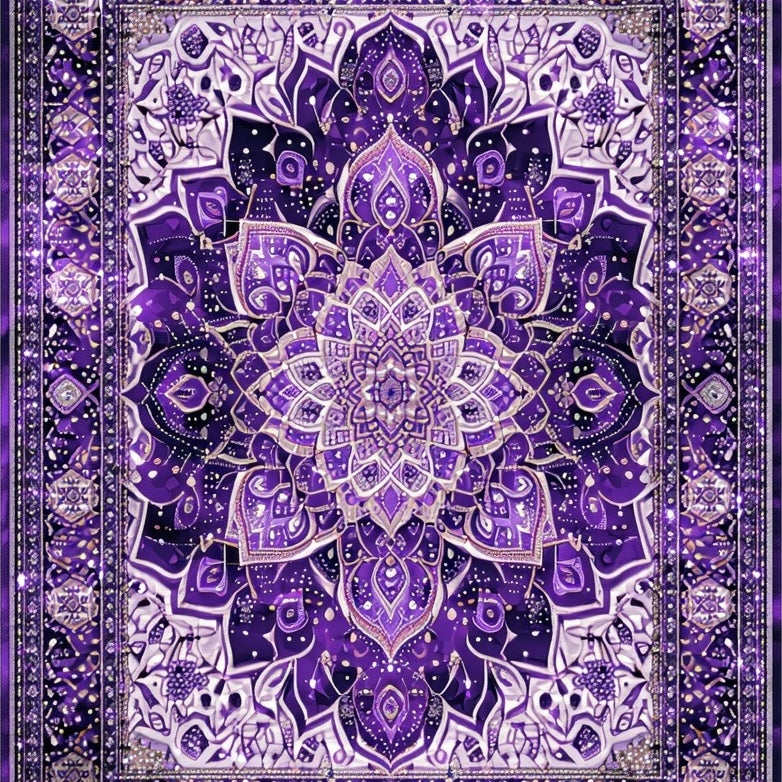 Fluffy Rectangle Abstract Floral Motifs(Purple)