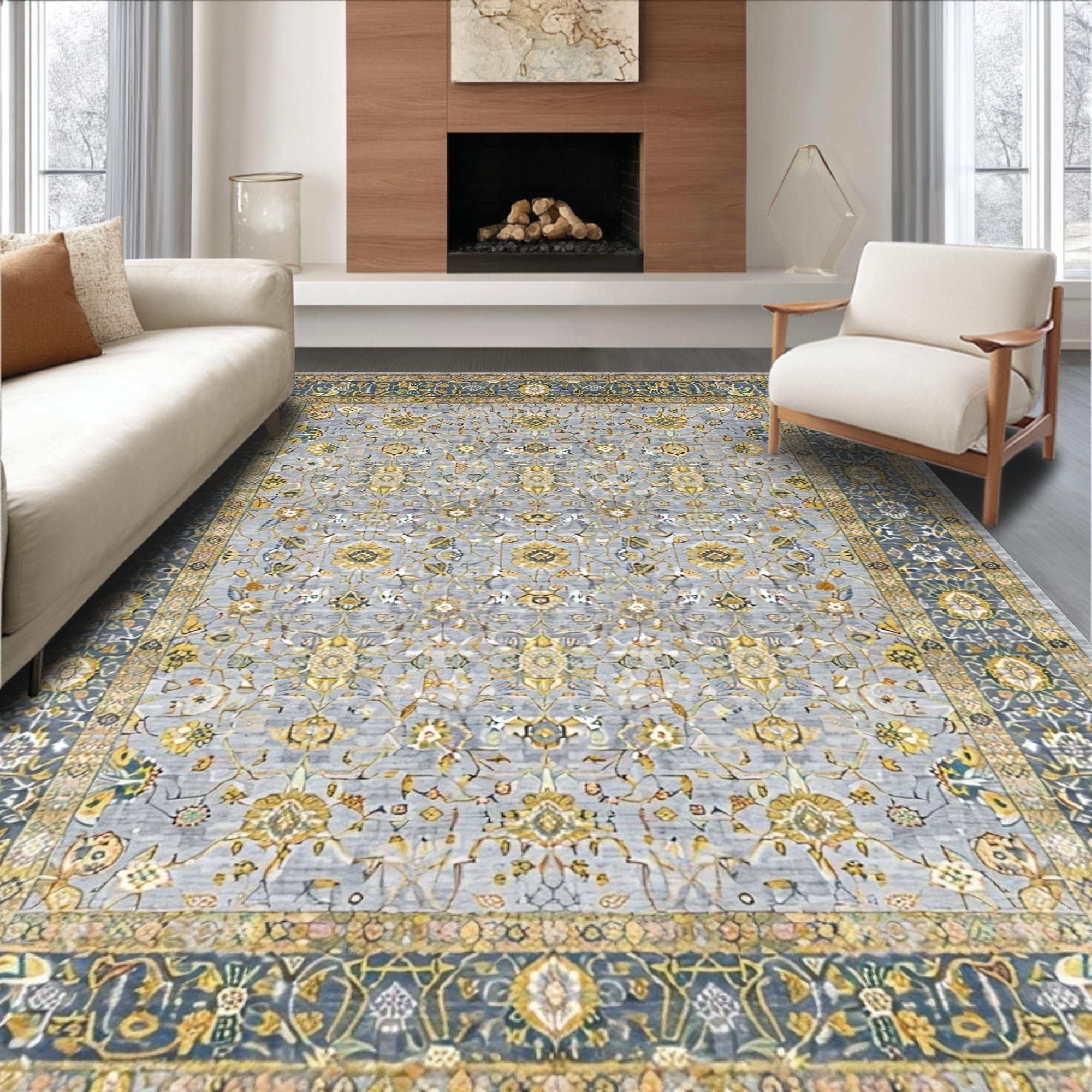 Contemporary Distressed Geometric Fusion(Beige)