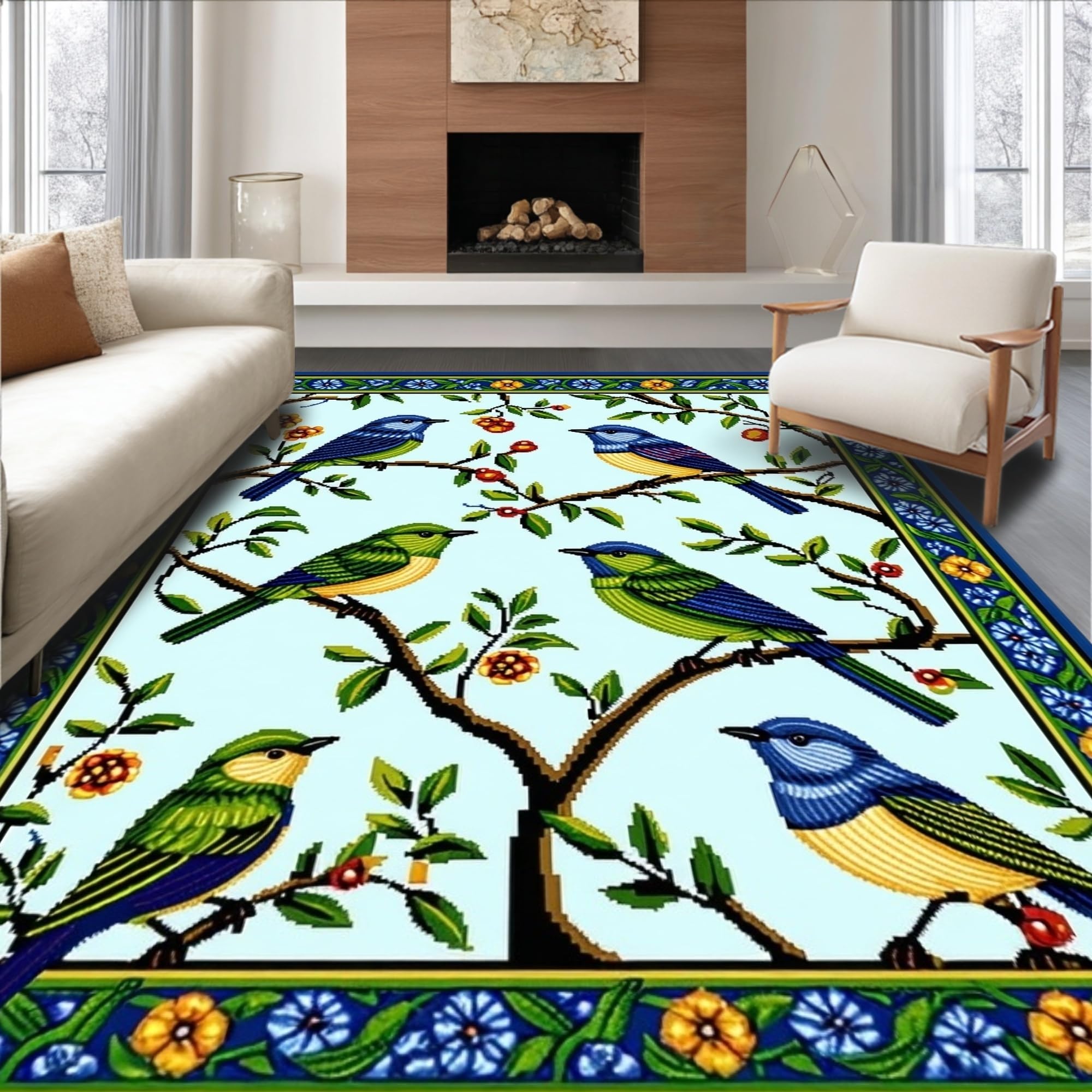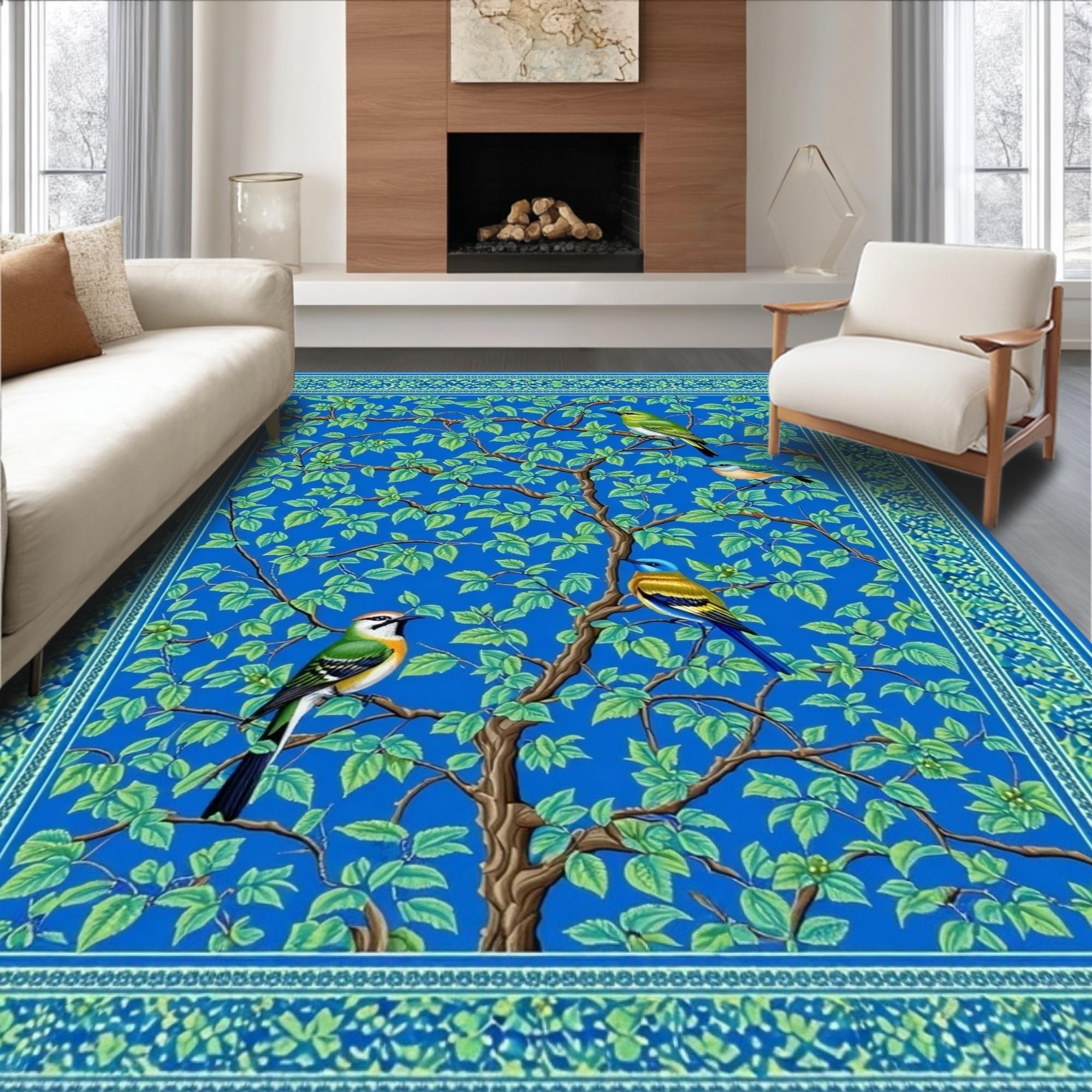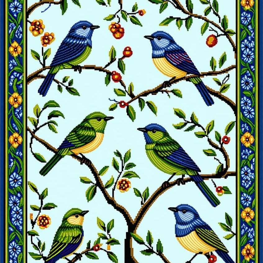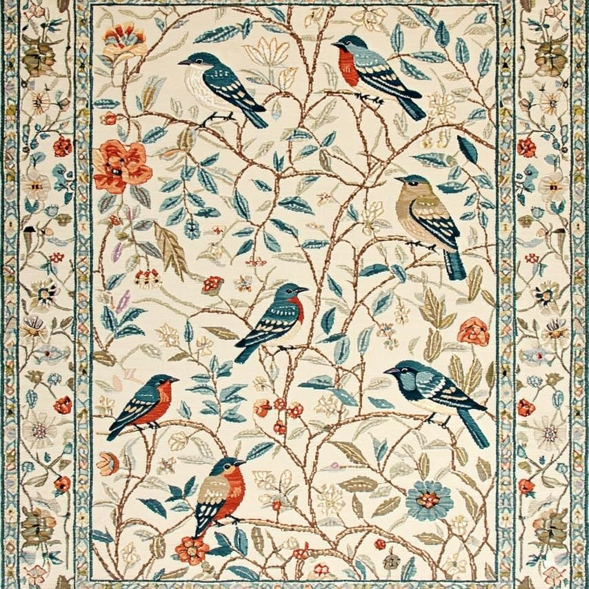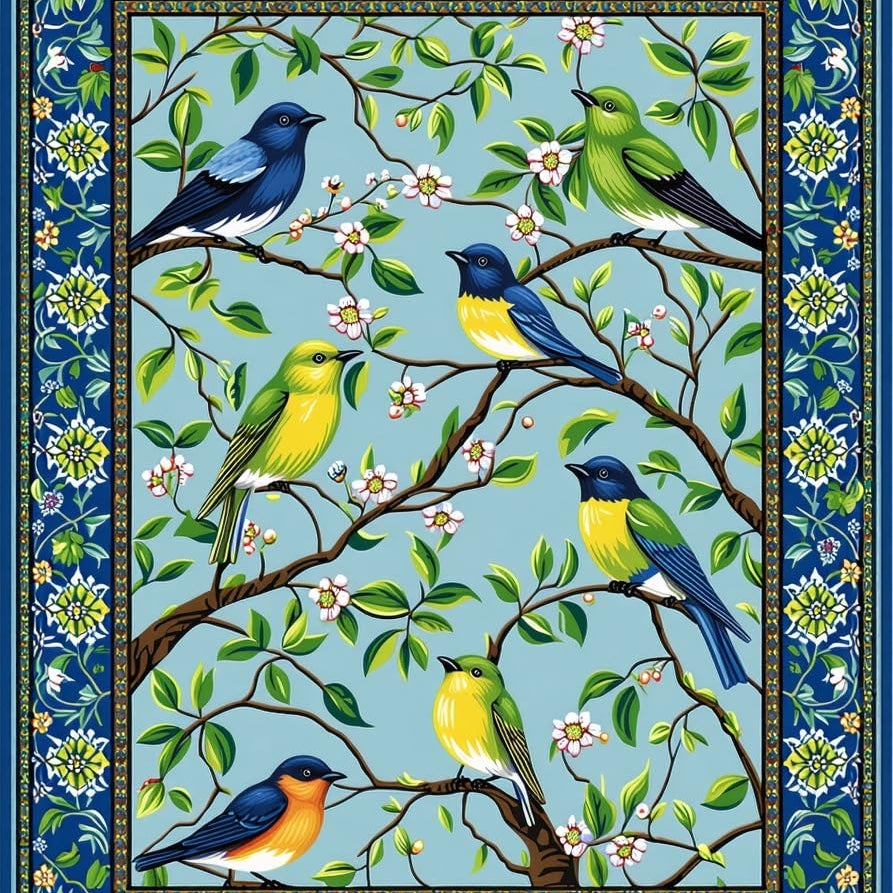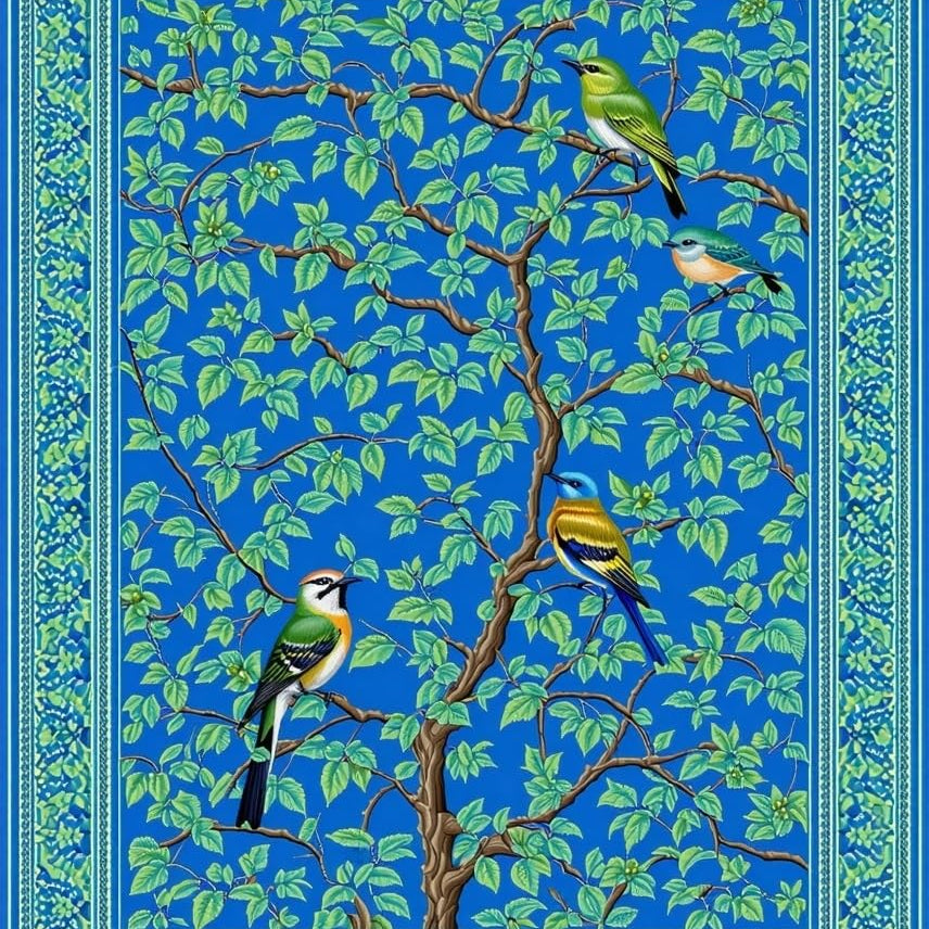 Lively Ornate Bird and Branch Ensemble(Blue)