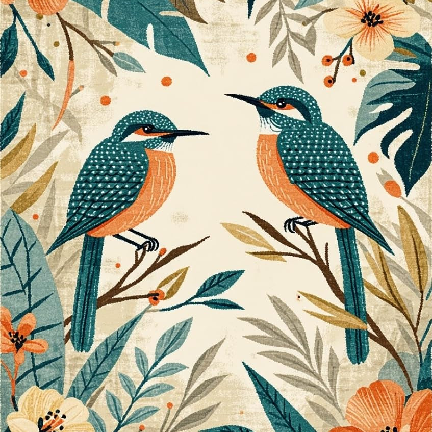 Stylish Rustic Bird Motif(Beige)