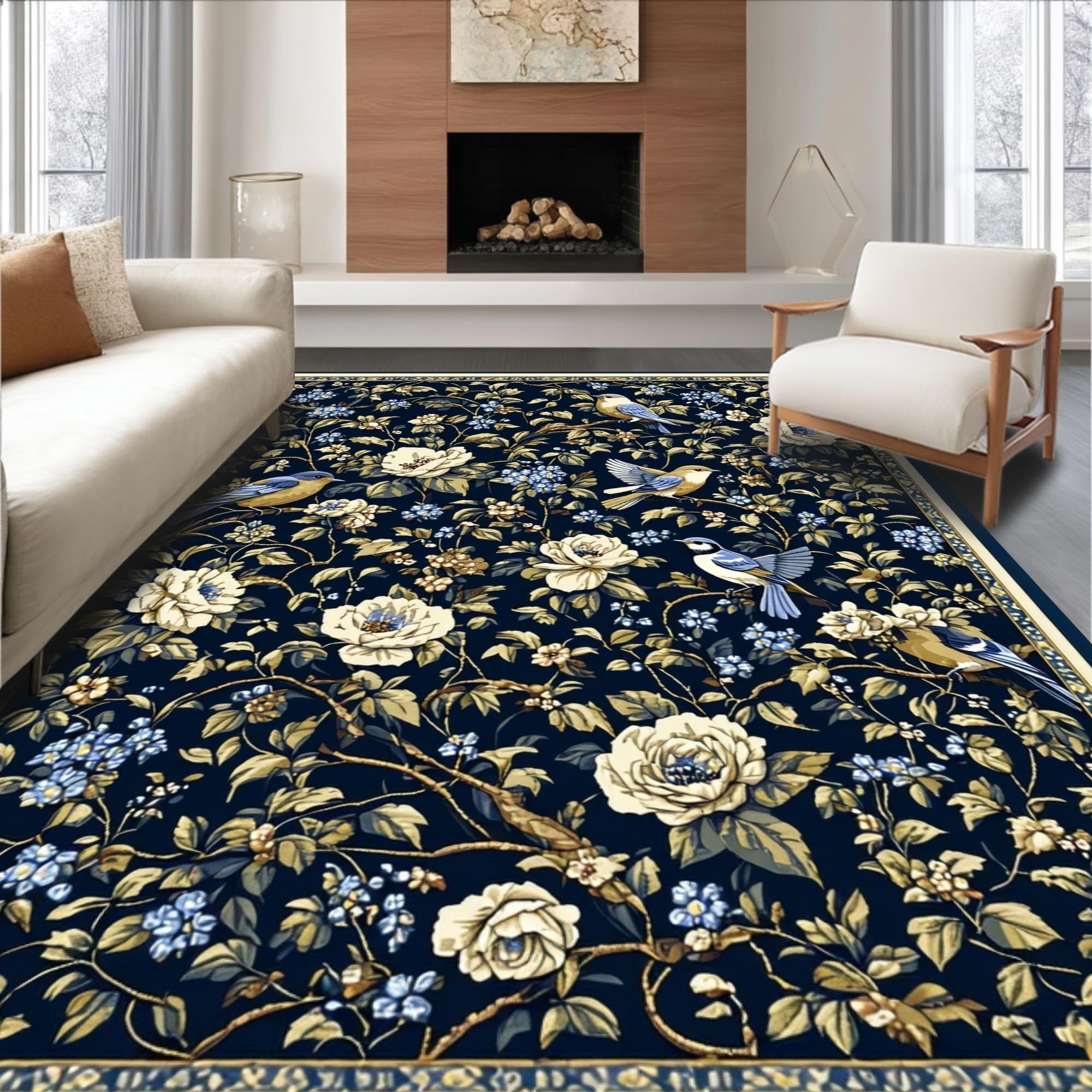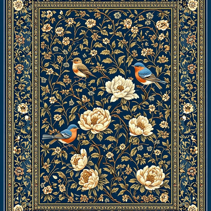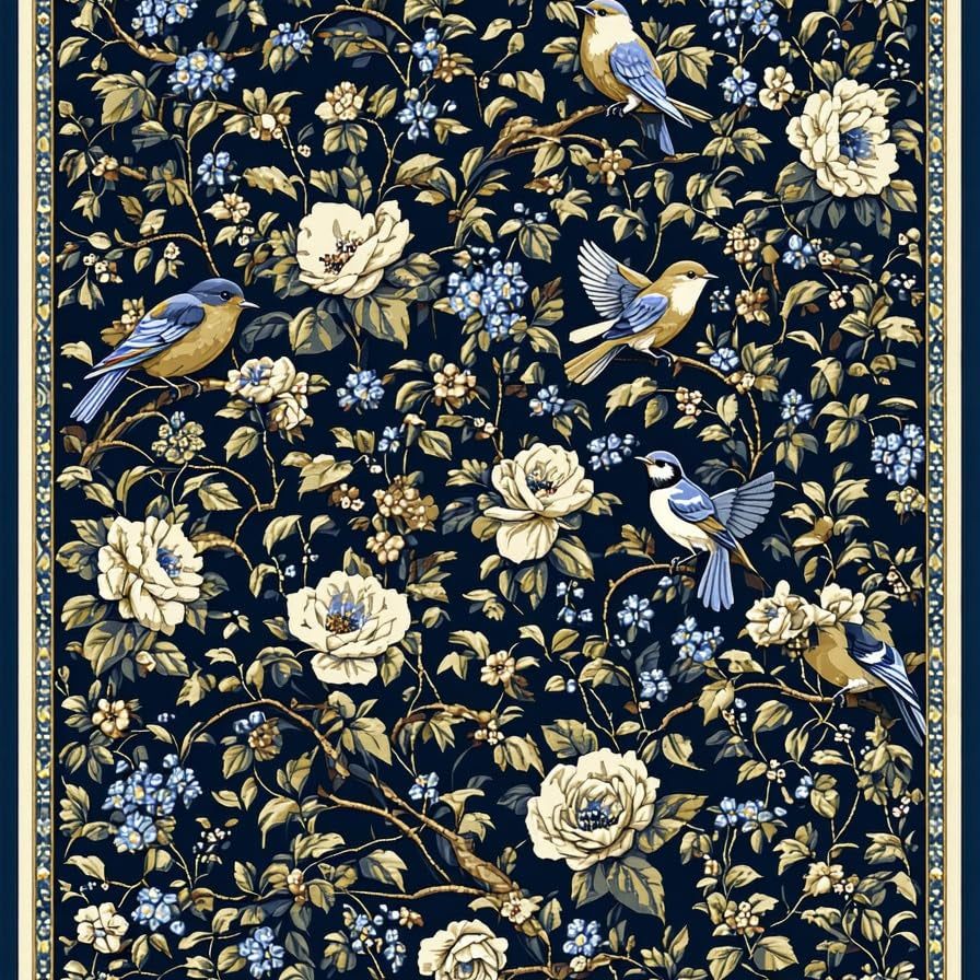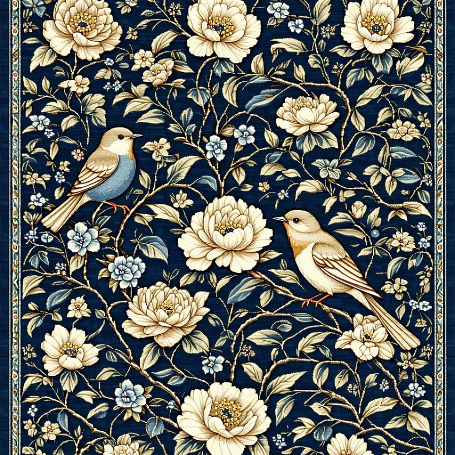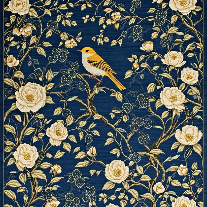 Whimsical Floral and Bird Fusion(Blue)