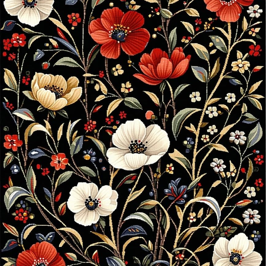 Traditional Handcrafted Flower Motif(Black)