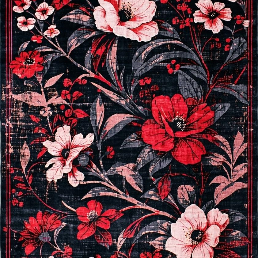 Vintage Inspired Colorful Blossom Art(Black)