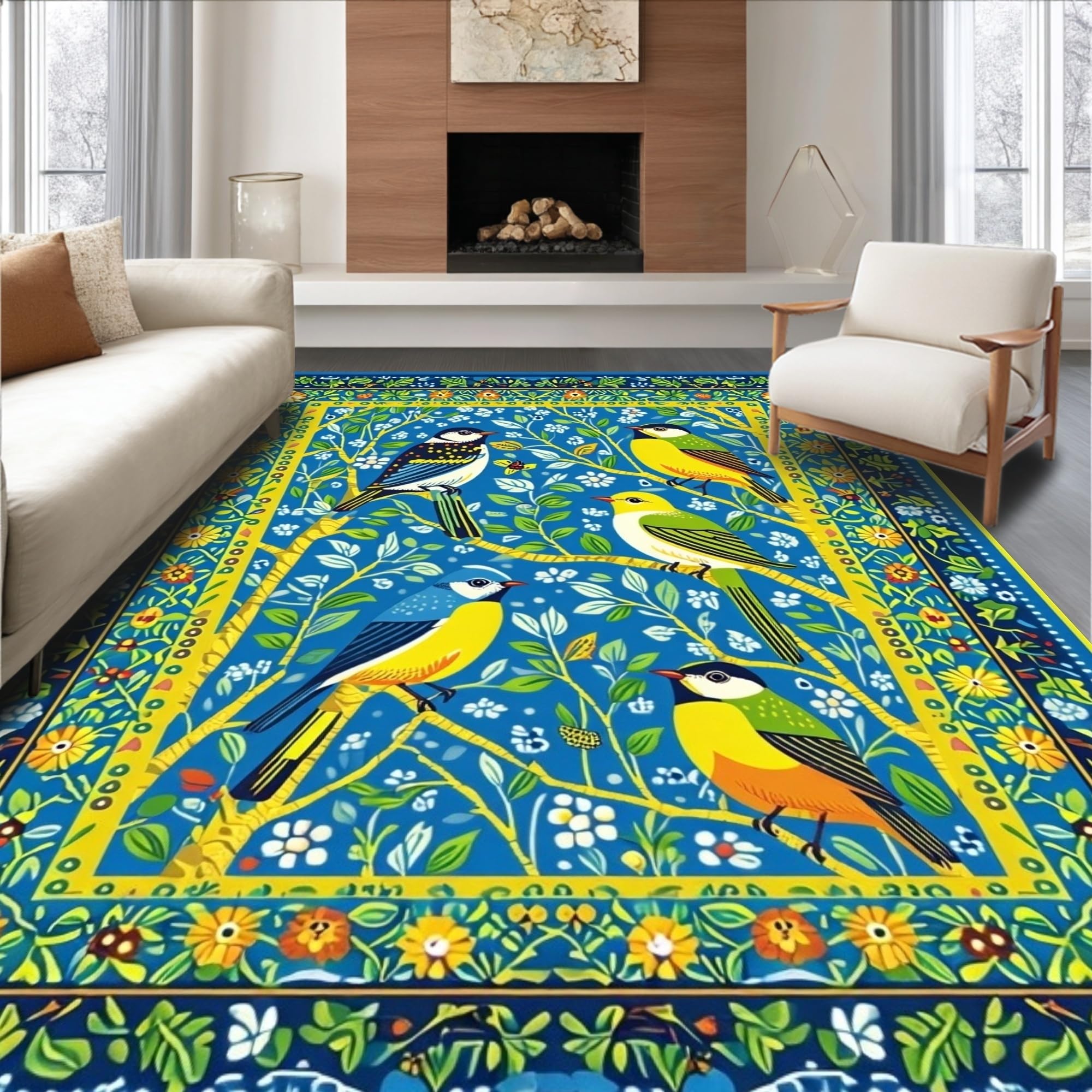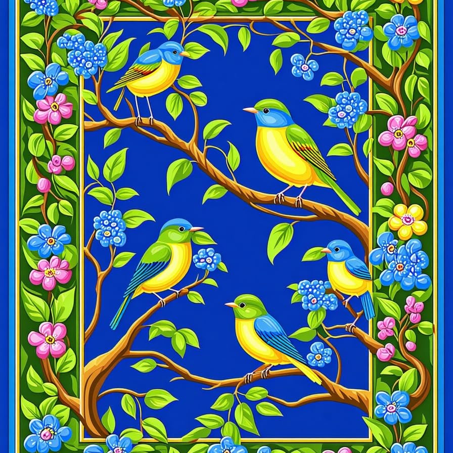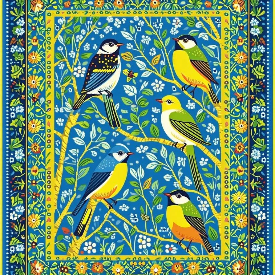 Colorful Avian Botanical Composition(Blue)