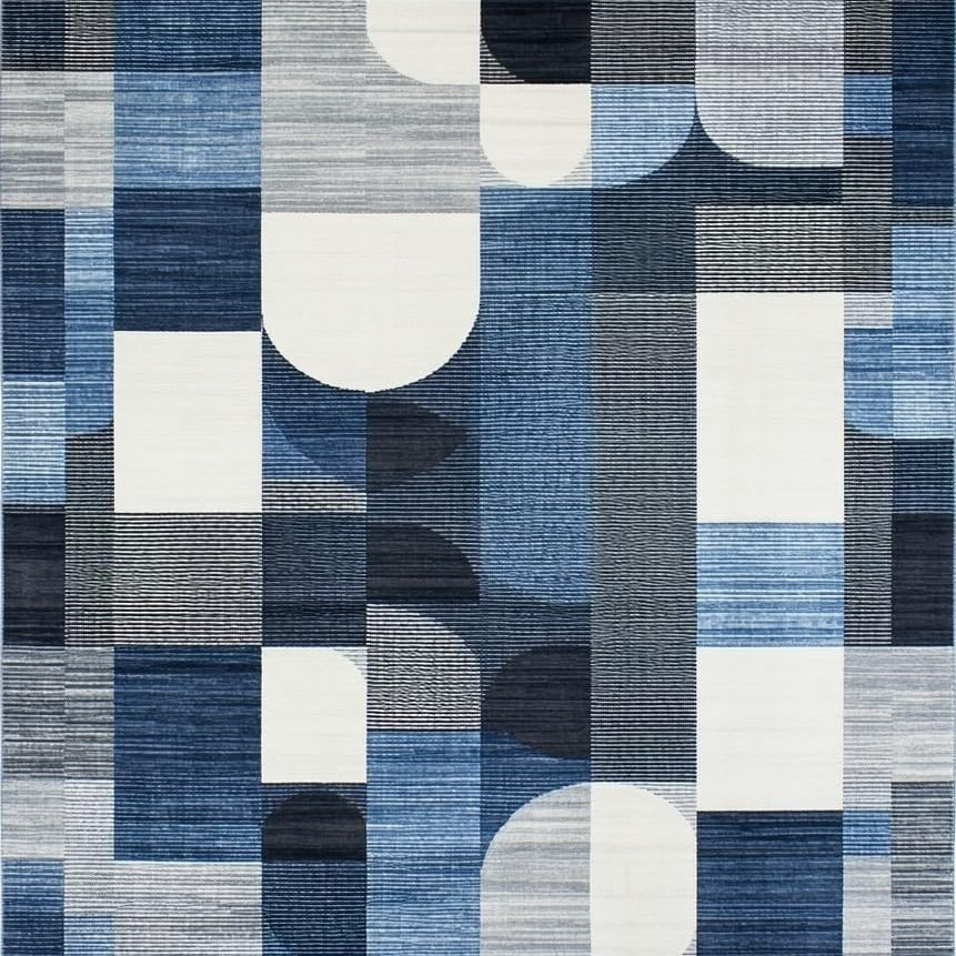 Contemporary Blue Geometric Fusion(Blue)