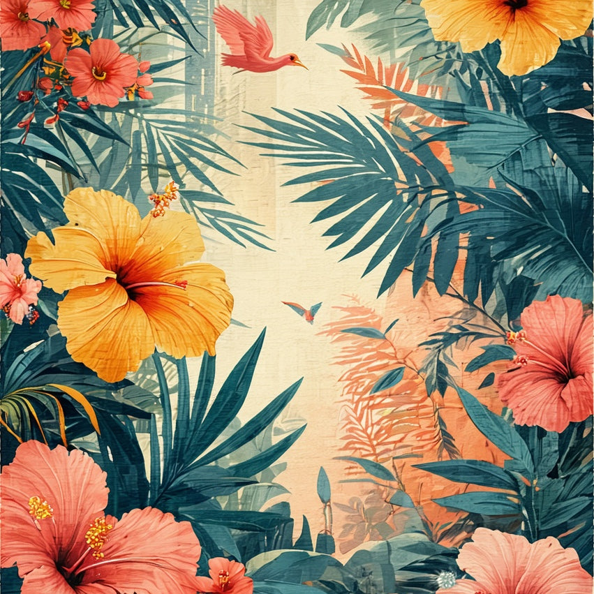 Tropical Hibiscus Surfboard Artwork with Retro Design(Red)