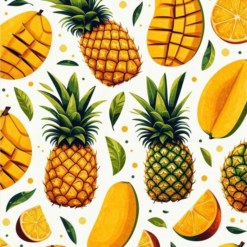 Tropical Fruit Colorful Pineapple & Mango Print(Yellow)