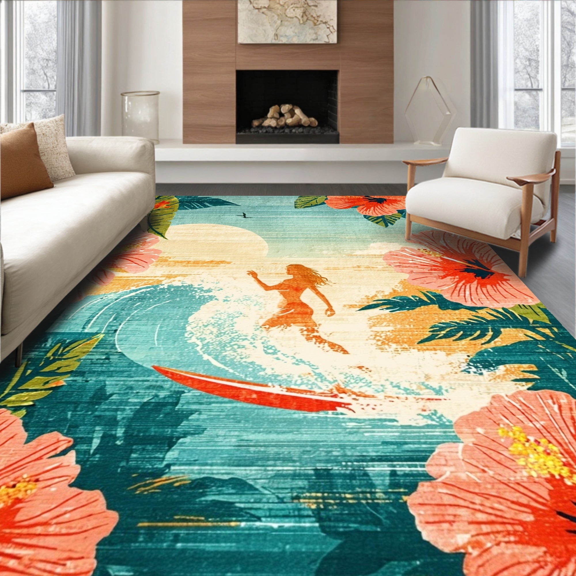 Hawaiian Inspired Surfboard Printed Tropical Beach Themed Floor(Blue)