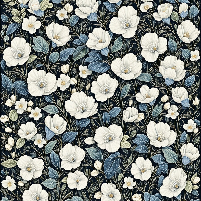 Graceful Motif with Delicate Blooms(White)