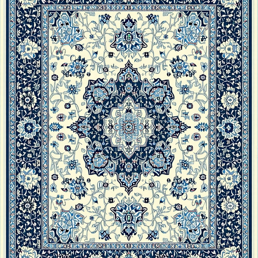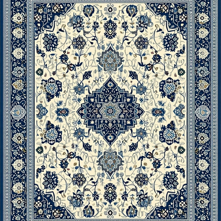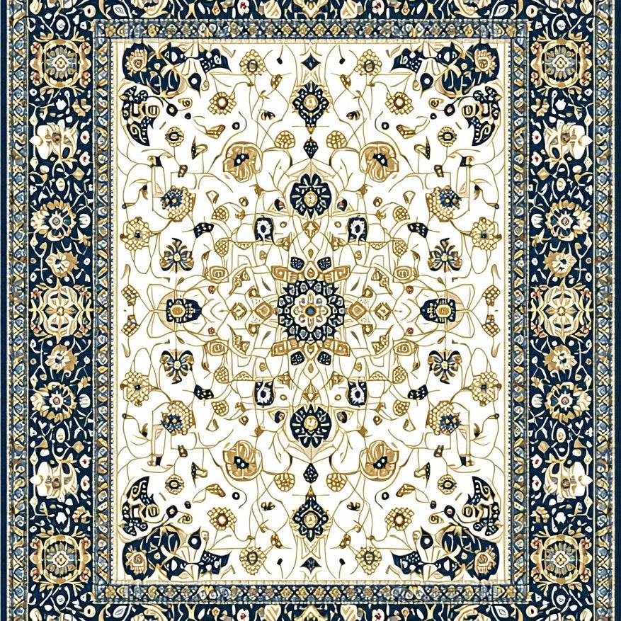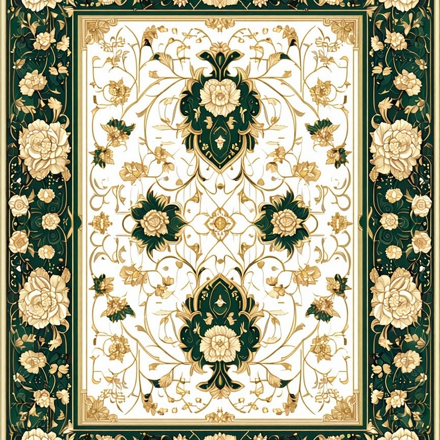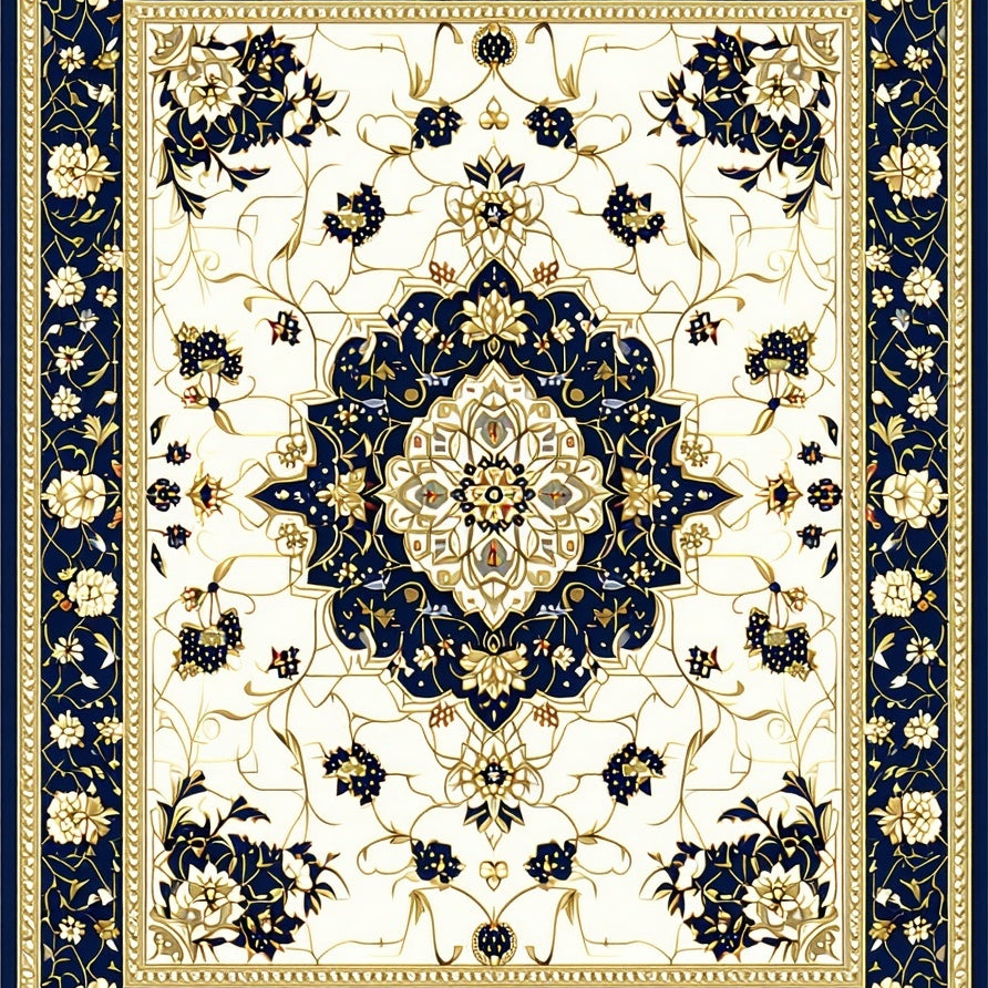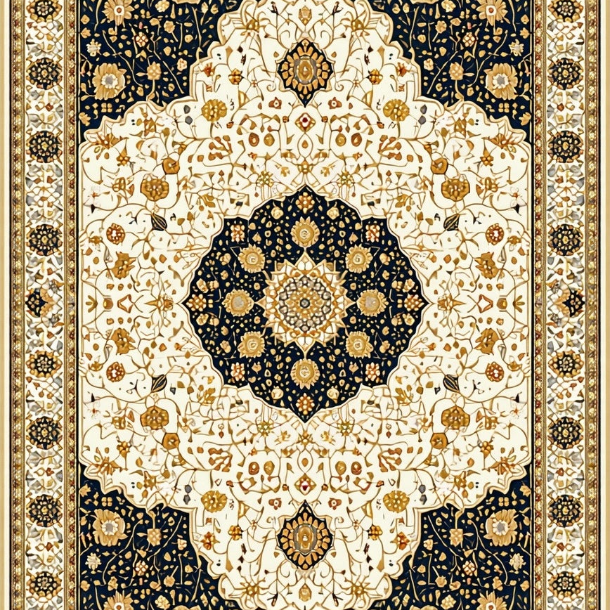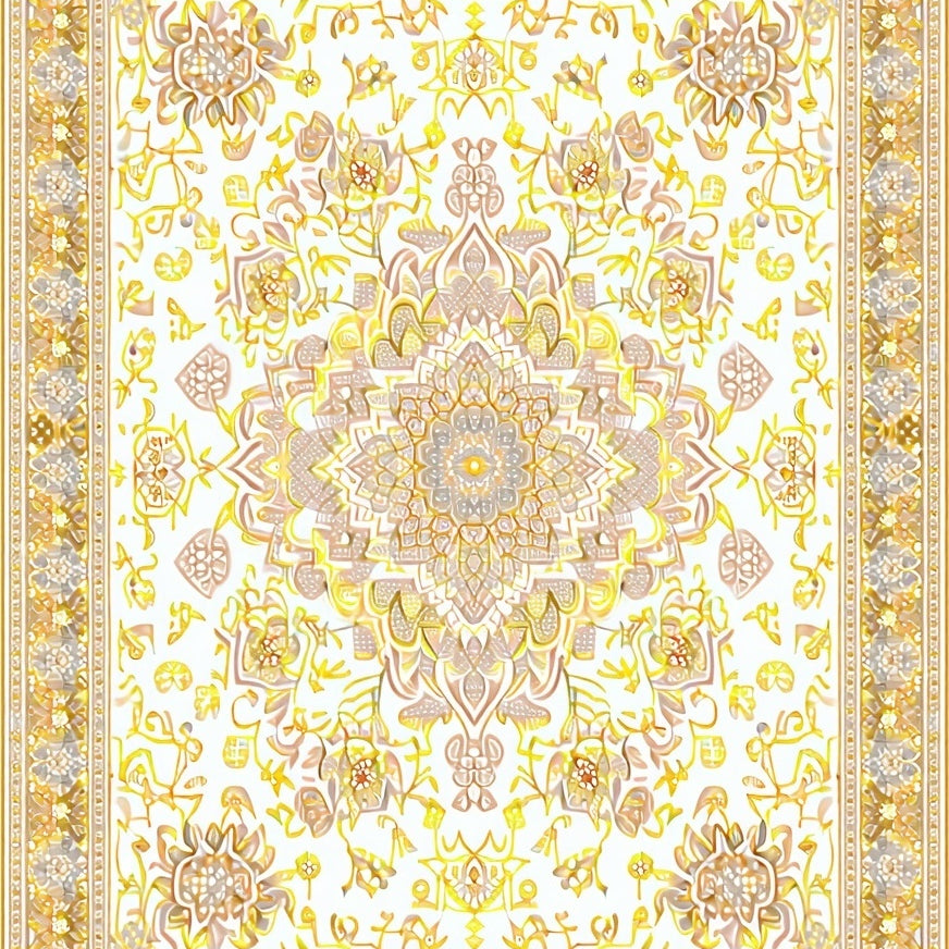 Vintage Inspired Boho with Ornate Black and Beige Medallion Motifs(White)