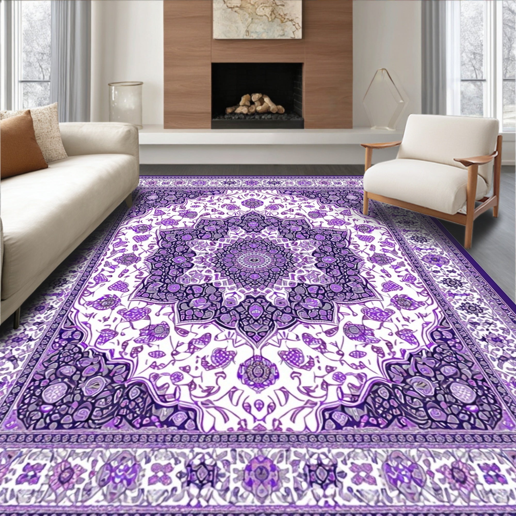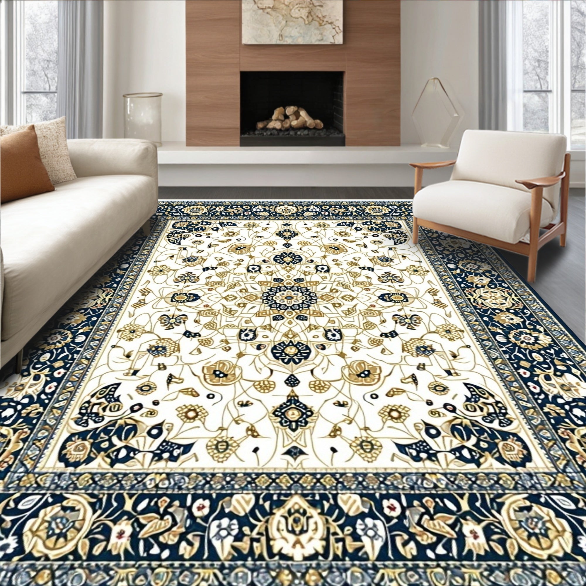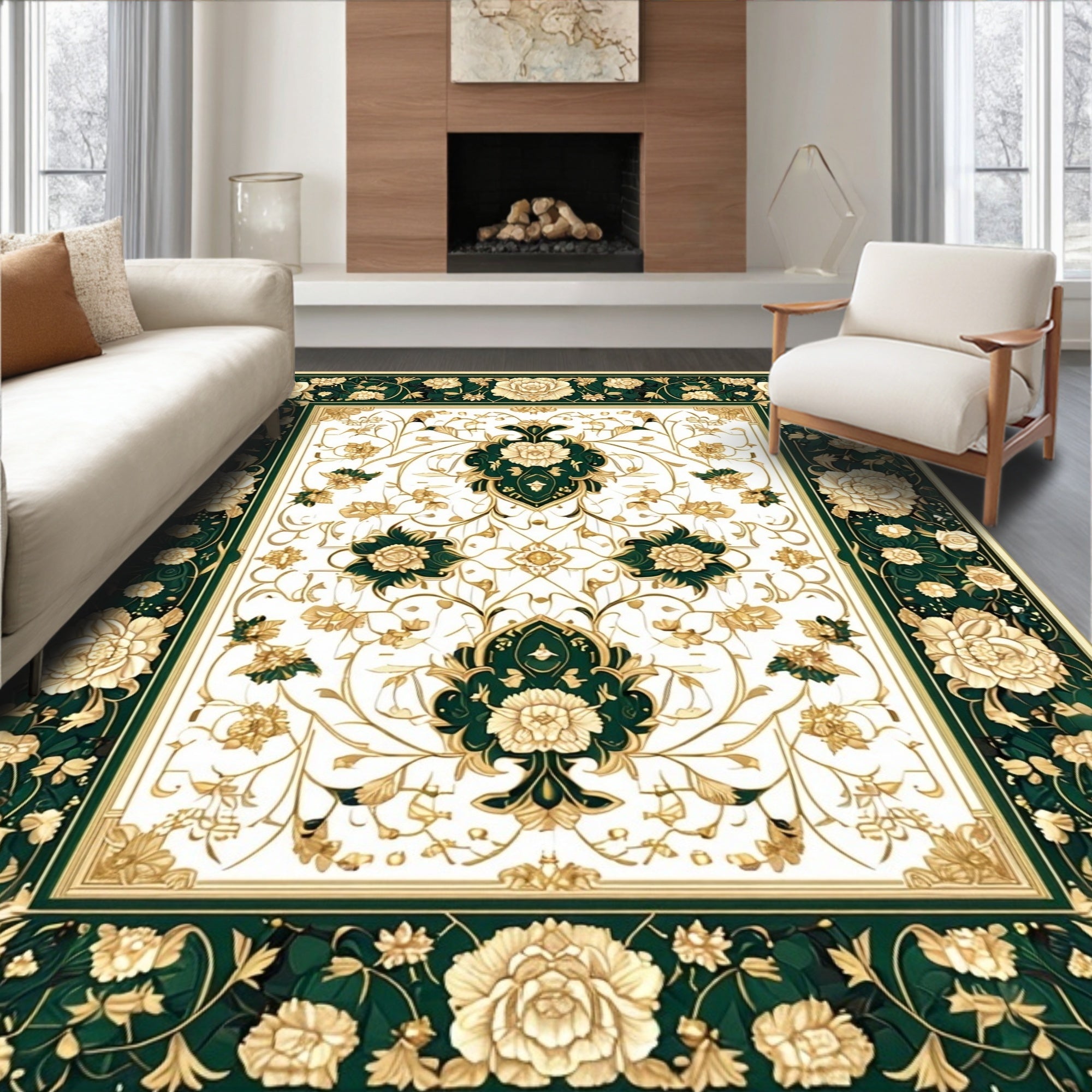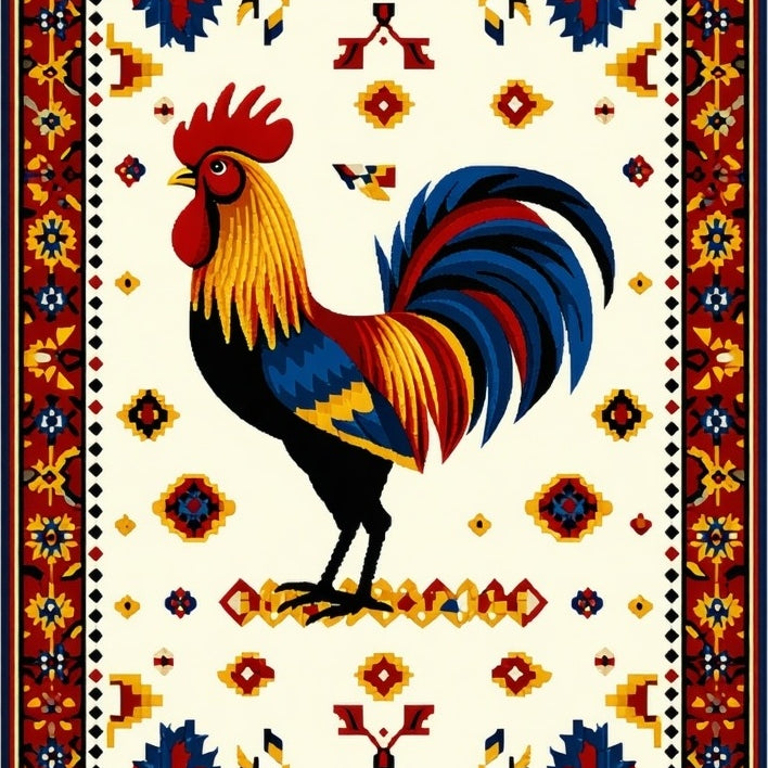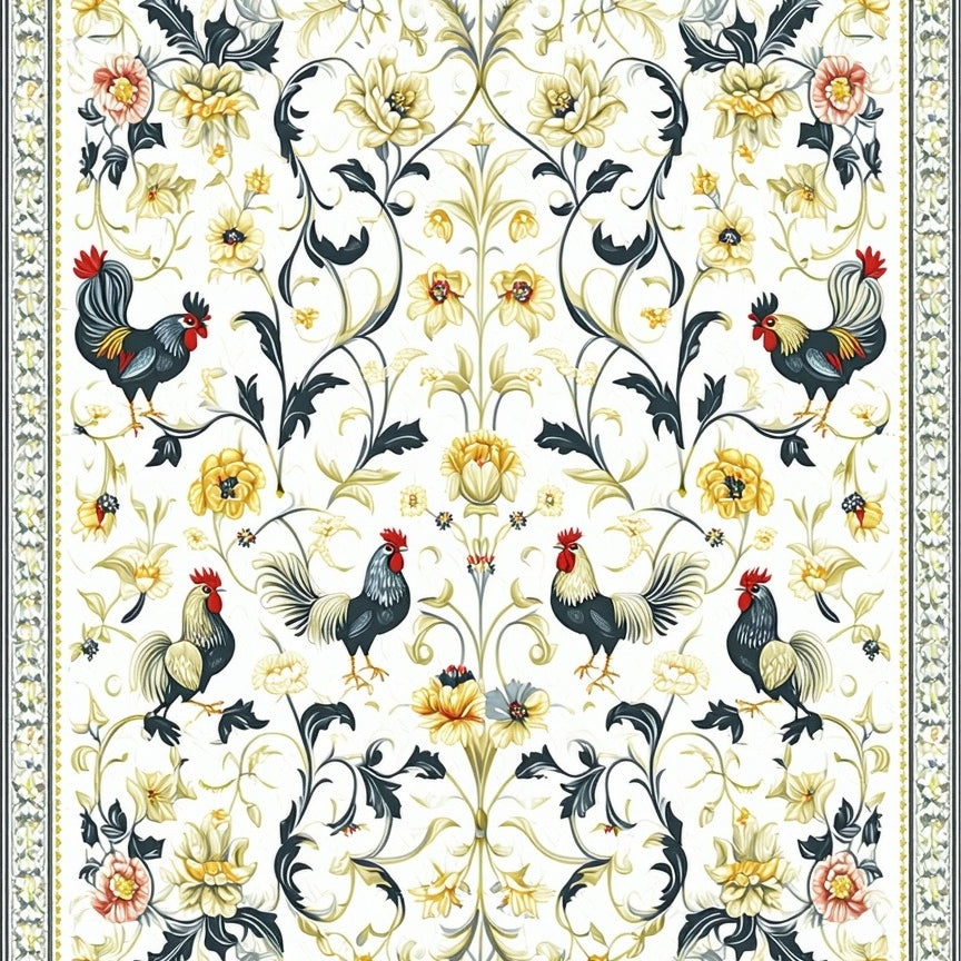 Country Rooster Design Slip Resistant Beige Multi Color Folk Art Style(White)