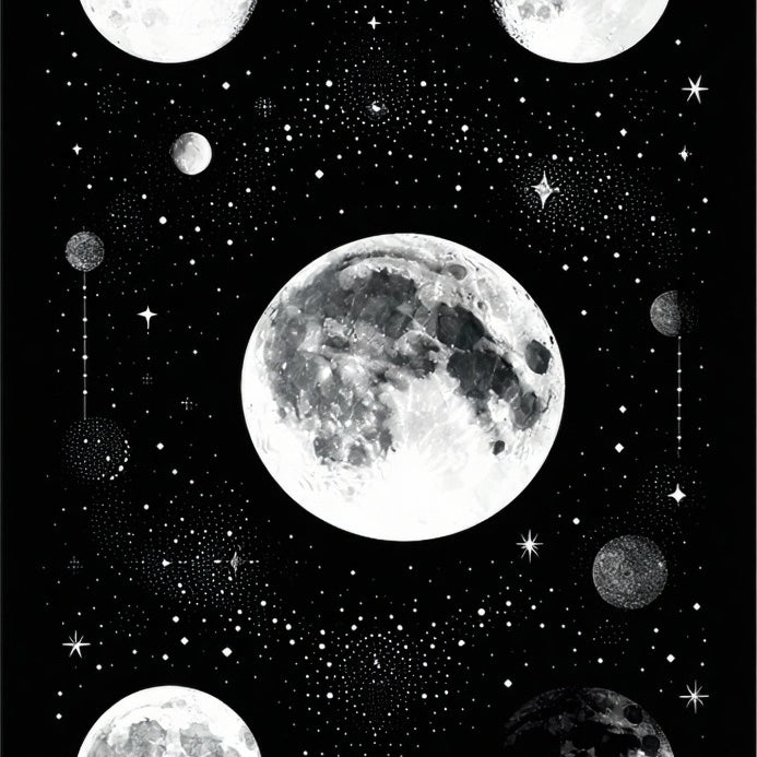Mystic Moonbeam Black & Lunar Phase Bath Boho(White)