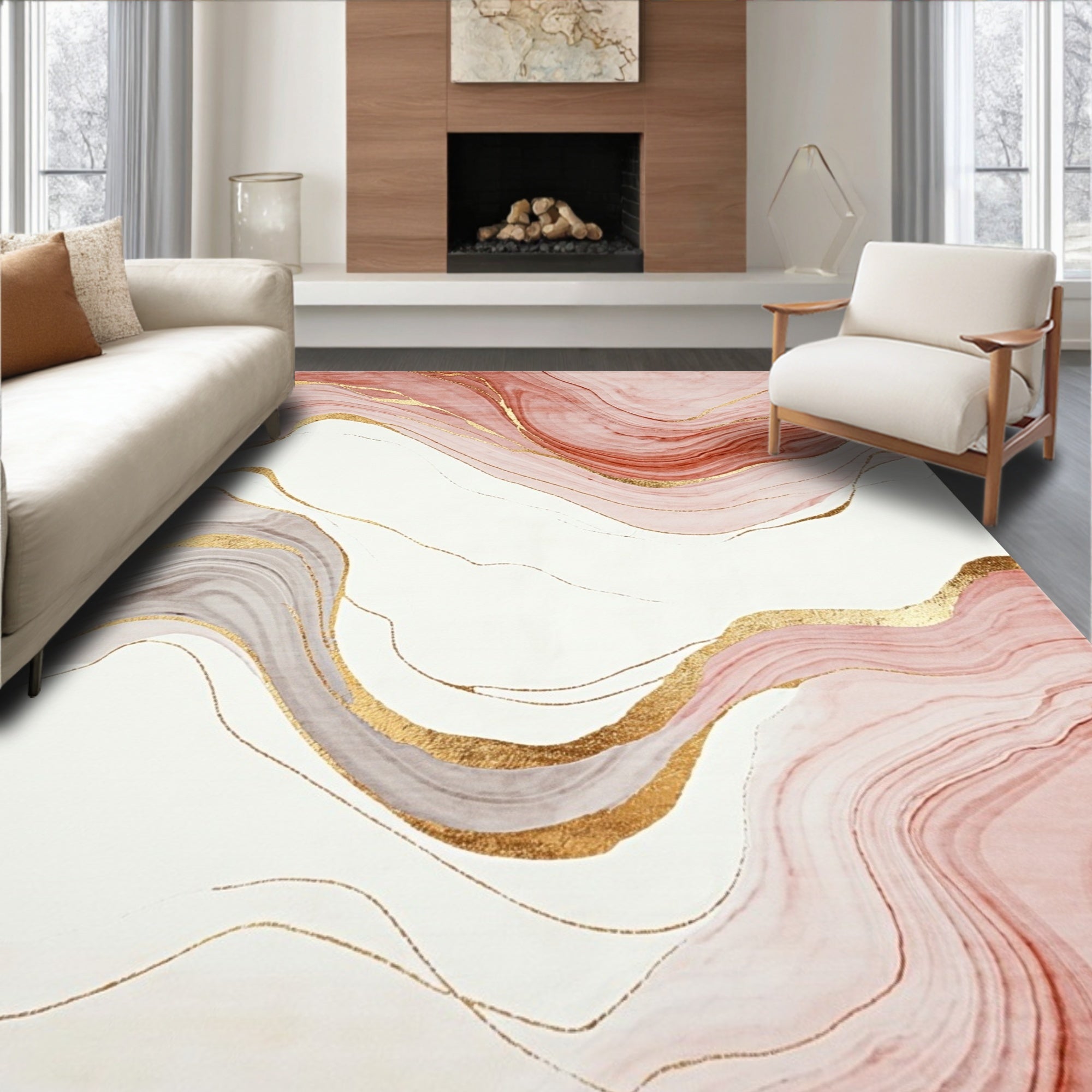 Modern Marble Inspired With Blush and Beige Swirl Accents(White)