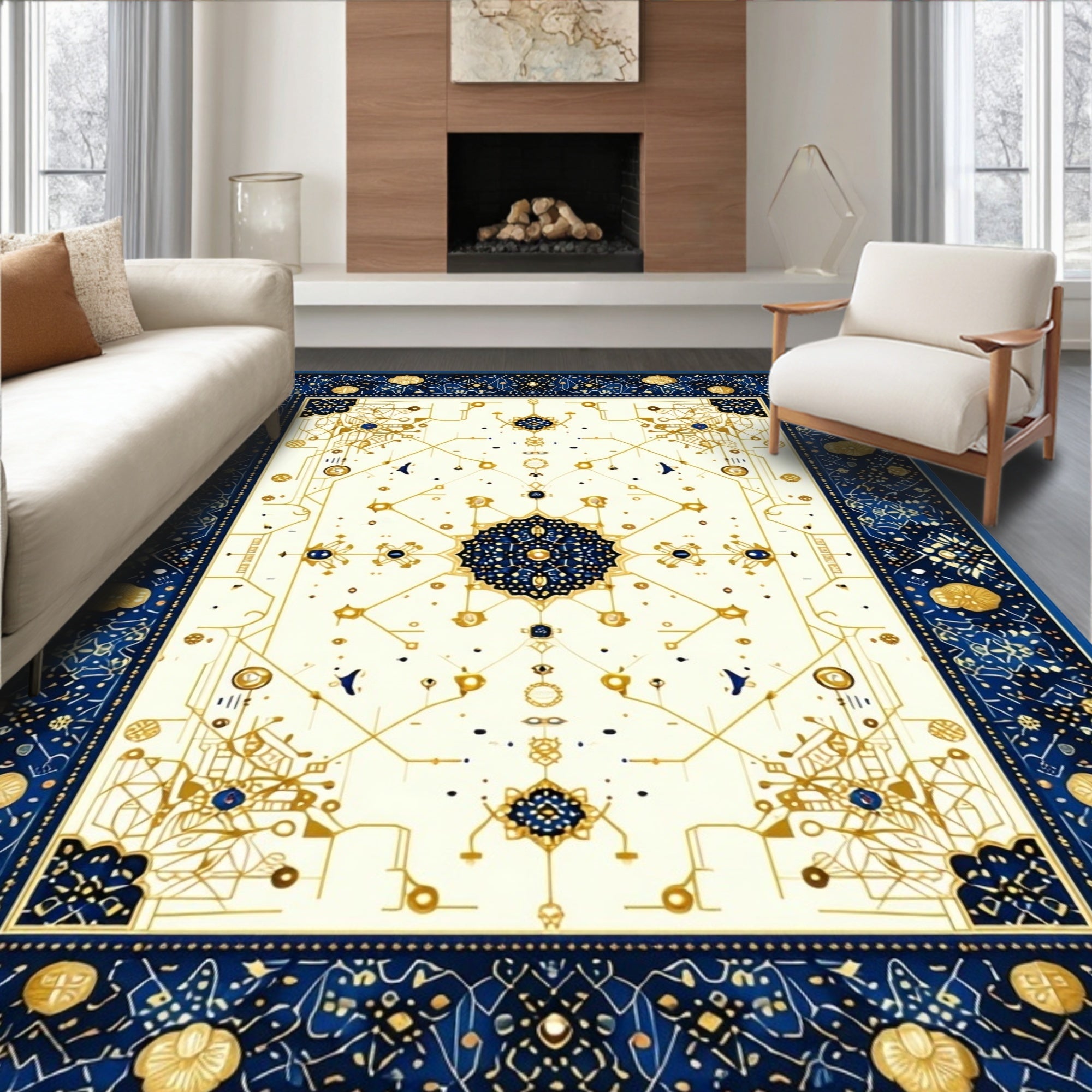 Ethereal Beige Gold Geometric Marble Swirls Indoor(White)