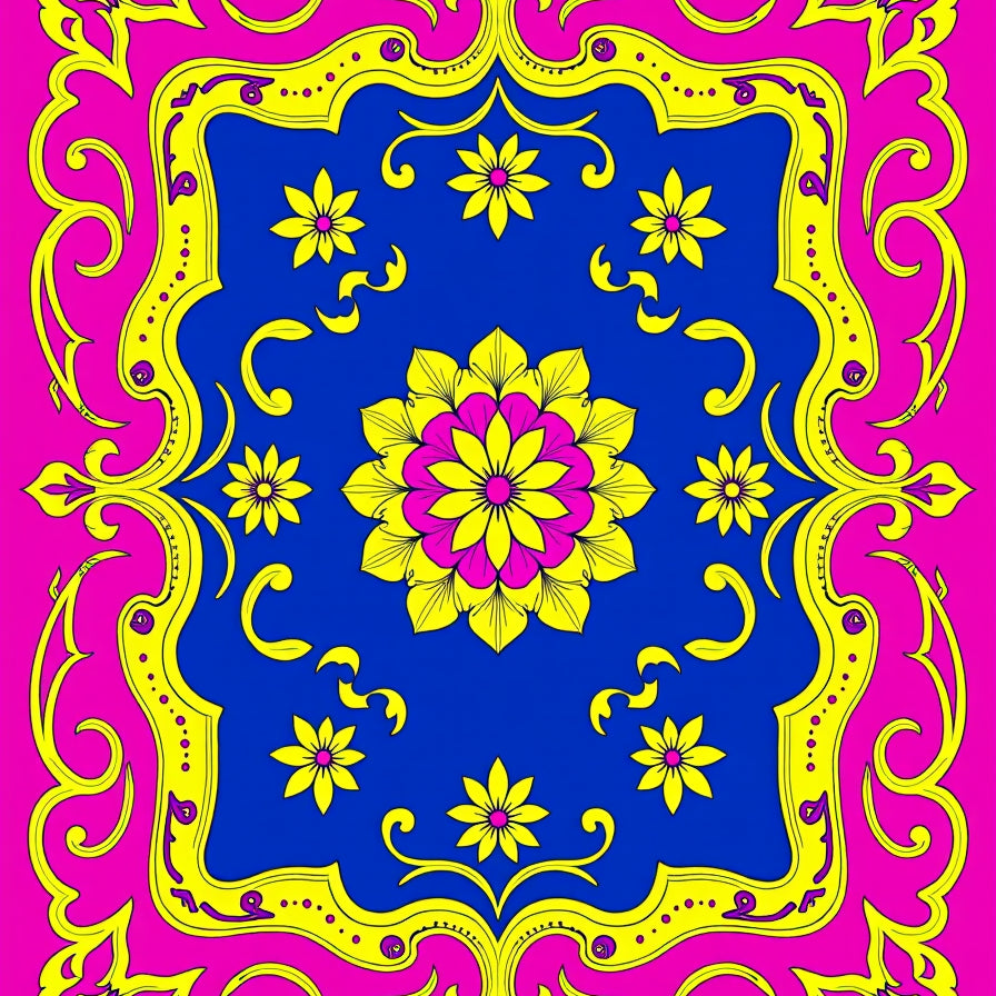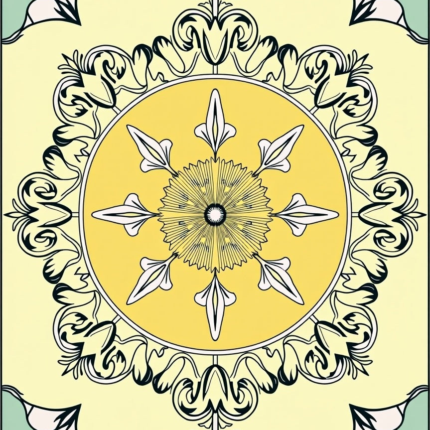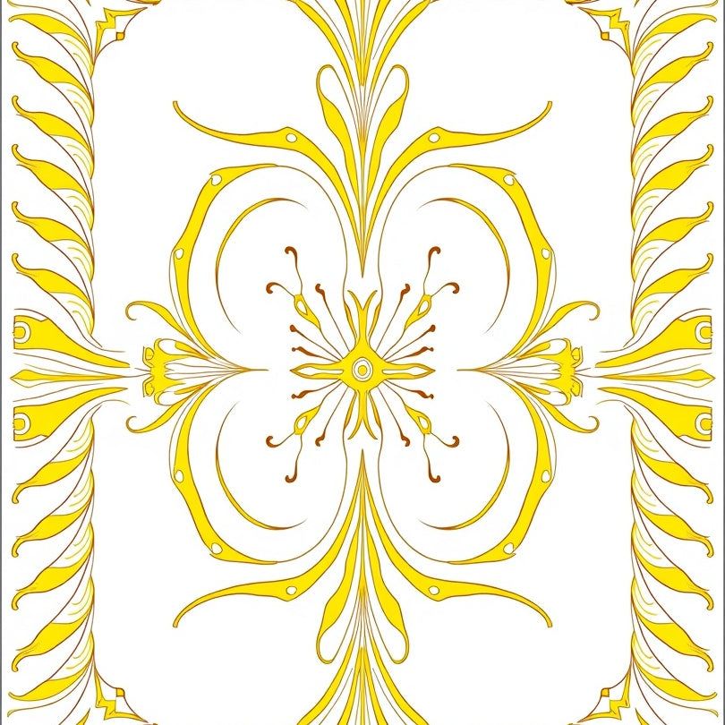 Wildflower Medallion with Petal Motifs and Vintage Scrollwork (Yellow)
