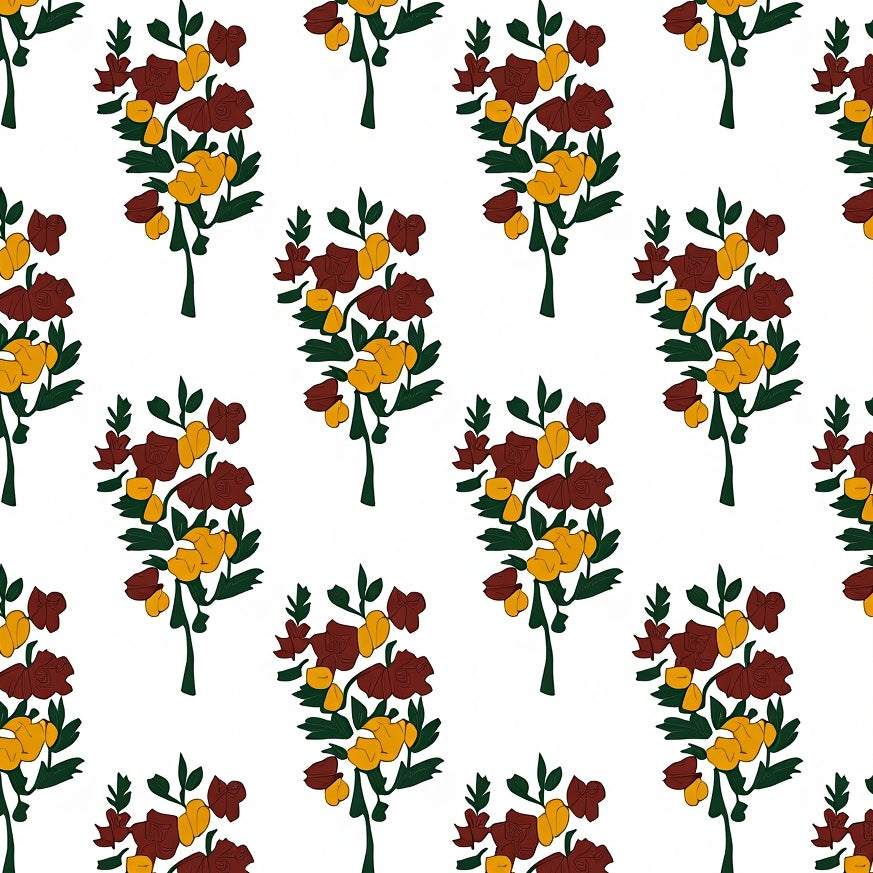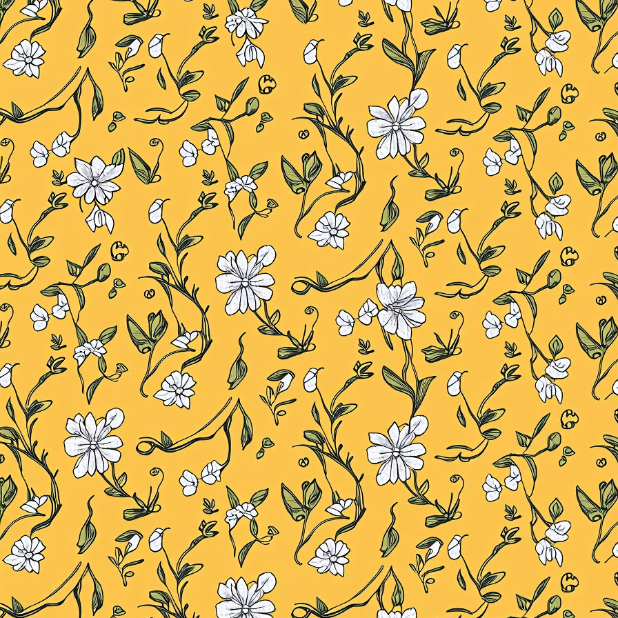 Vintage Botanical Medley Featuring Delicate Sunflower and Leaf Motifs (Yellow)