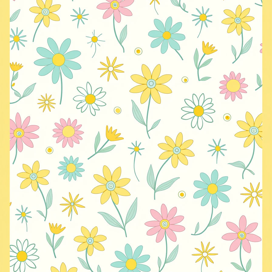 Sunburst Daisy Chain Design with Retro Cottage Aesthetics (Yellow)