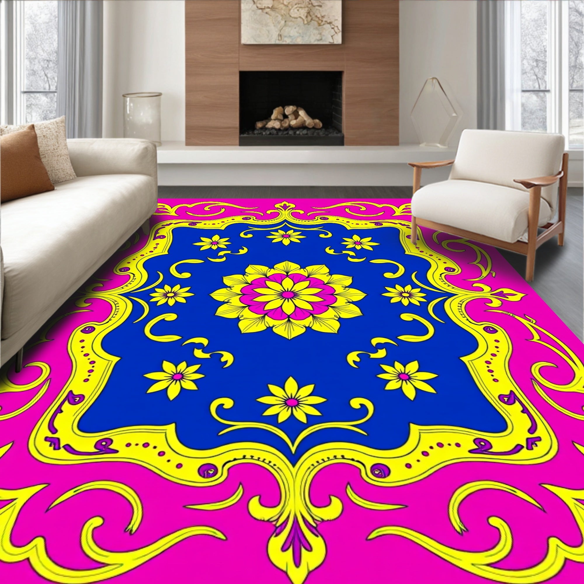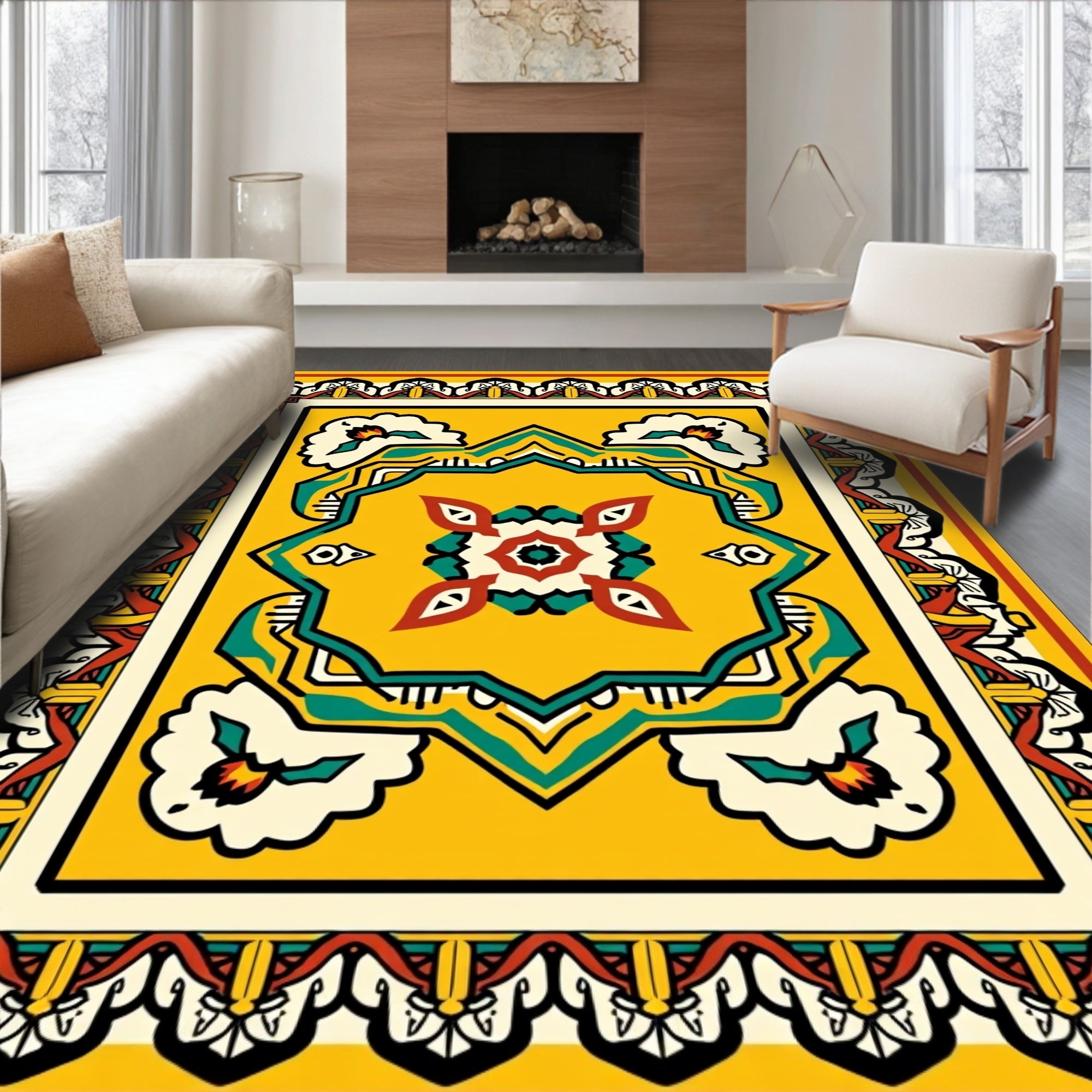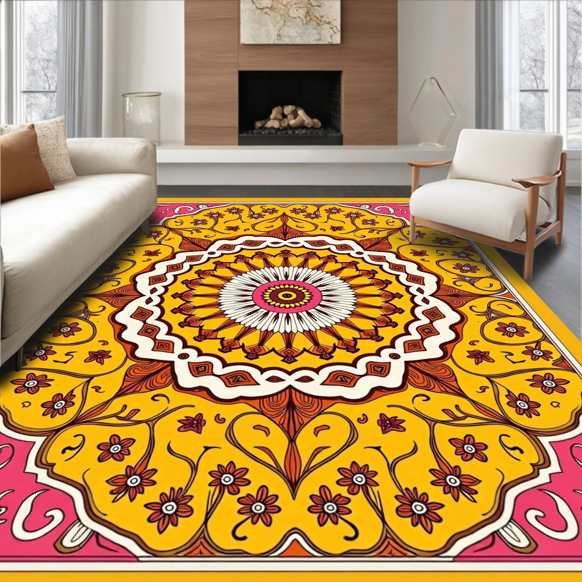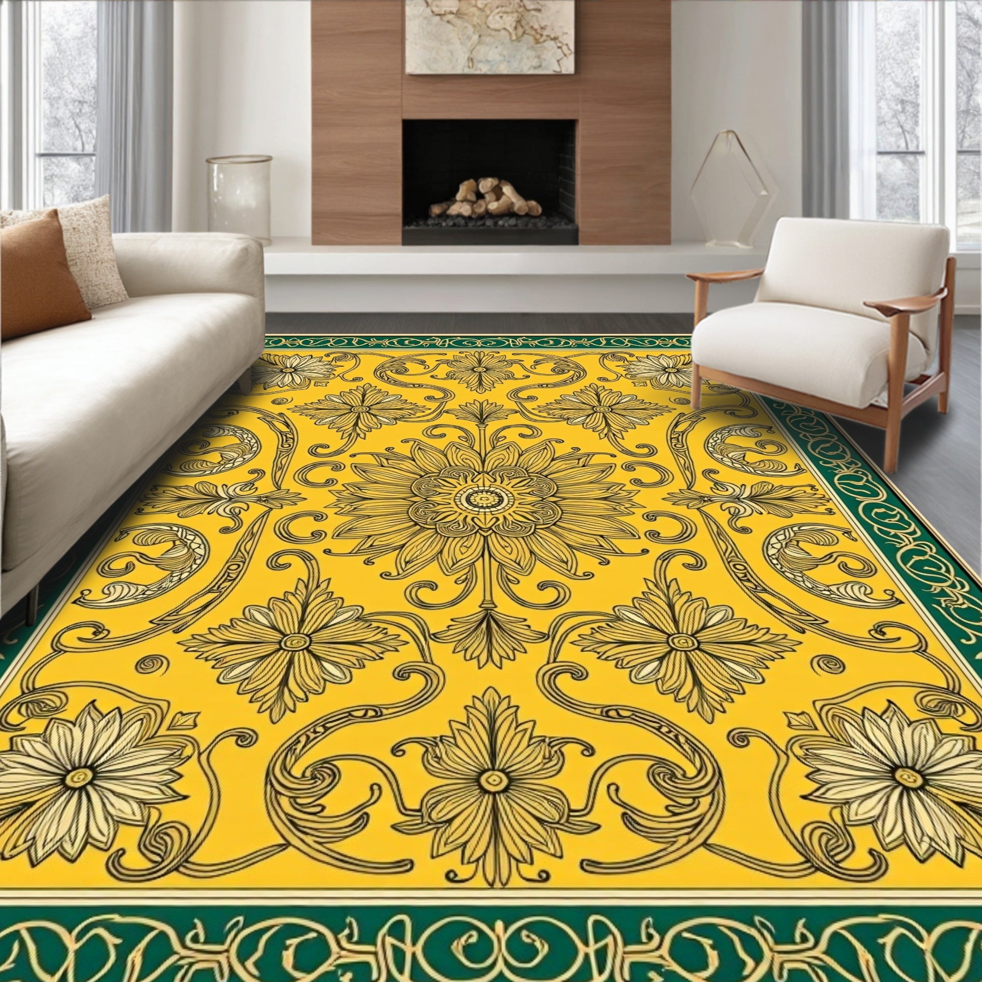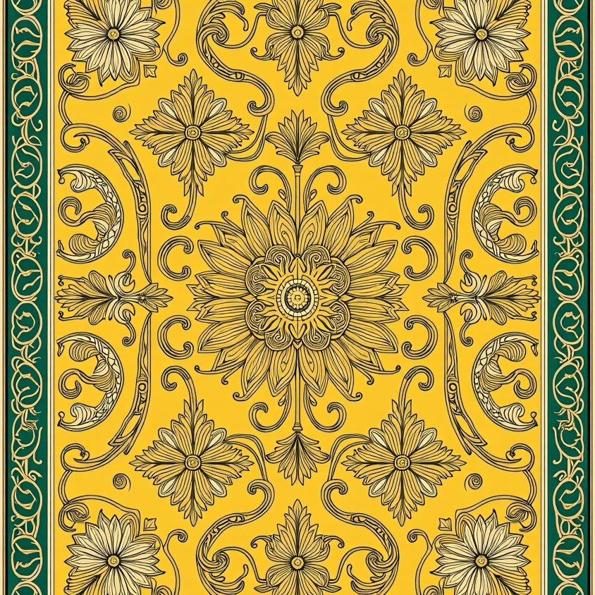 Vintage Floral Medallion Ornate Scrollwork Traditional Design (Yellow)
