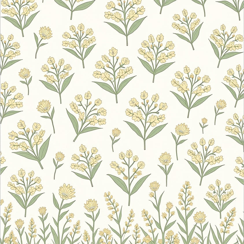 Botanical Meadow Blooms with Whimsical Leafy Accents (Yellow)