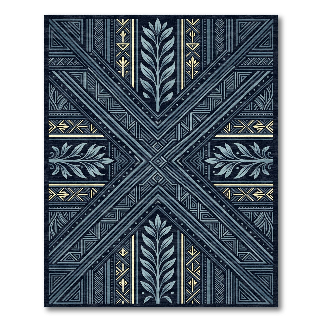 Channeling the opulent symmetry and stylized forms of the Art Deco movement, this design echoes the Roaring Twenties' fascination with geometric order and the emerging appreciation for botanical motifs. The central medallion, reminiscent of Parisian decorative arts and the meticulous craftsmanship of ancient Roman mosaics, unfurls like a stylized laurel wreath, hinting at timeless achievement. Accents of pale gold, like a whisper of the era's lavish ornamentation, catch the light, drawing the eye through a labyrinth of crisp, interlocking lines that speak to a refined, modern aesthetic. This isn't merely a rug; it's a bold statement piece for the discerning collector, a fragment of architectural grandeur brought into the home. For the soul who finds beauty in sophisticated structure and the subtle dance between the organic and the man-made, this rug transforms everyday moments into a tableau of understated luxury. Anchor your space with this ode to design's enduring elegance.