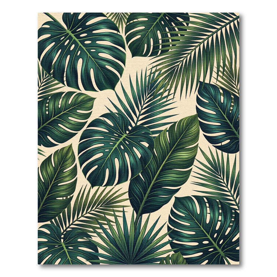 Channel the vibrant energy of a sun-drenched rainforest and the serene stillness of a hidden jungle cove with this captivating tropical-inspired design. Echoing the lush, bold patterns found in vintage Botanical illustrations and the immersive quality of Neo-Tropical Modern decor, this rug transports you to a verdant paradise. The deep emerald leaves of the monstera, with their iconic fenestrations, intertwine with the feathery fronds of palms, creating a dynamic yet harmonious tableau. Imagine stepping off the plane and into an oasis, the air alive with natural beauty. This rug transforms ordinary spaces into vibrant sanctuaries, inviting a sense of calm and exotic allure. For the soul drawn to nature's wild artistry and the desire to cultivate a home that breathes life and tranquility. Don't just decorate your space—evoke an escape.