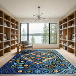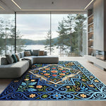 Elegant Blue Floral Medallion Accents Rug