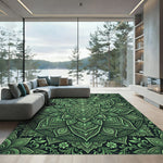 Emerald Green Intricate Floral Mandala Rug