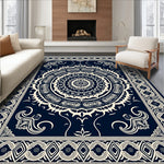 Flatwoven High Traffic Area Rug, Abstract Boho Medallion, Non Slip, Stain Resistant, Washable Area Rugs for Living Room, Bedroom (Navy) Overview: