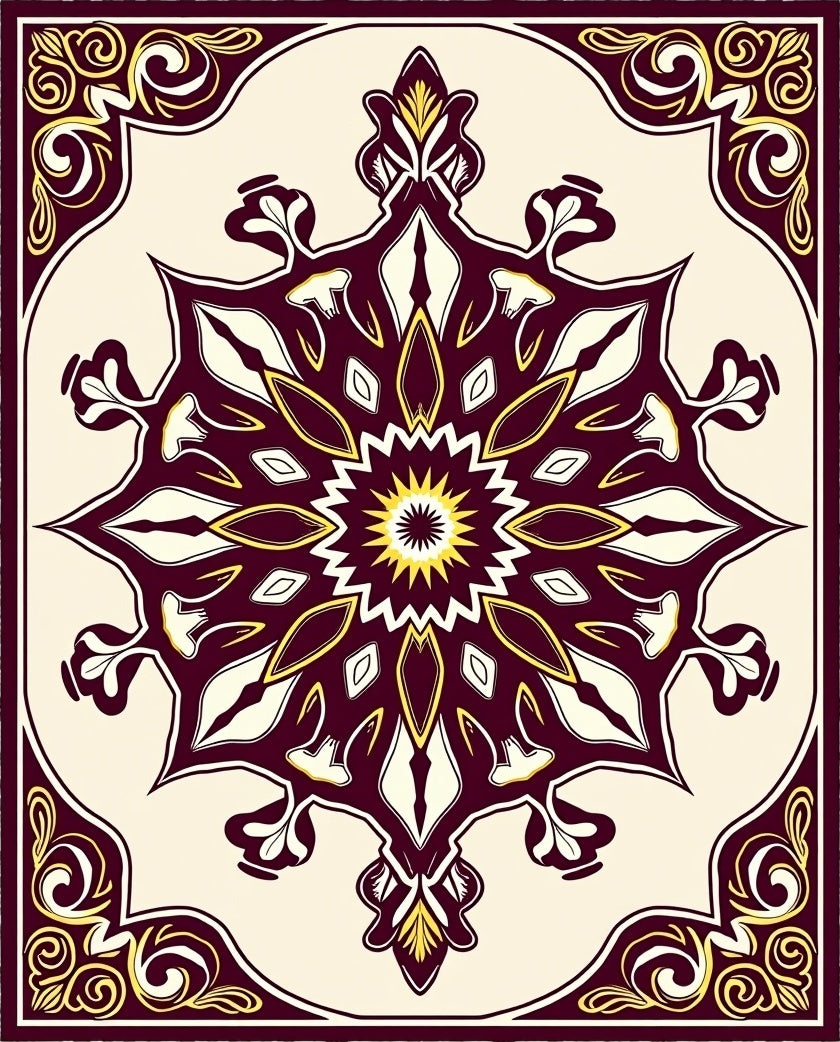 Abstract Burst with Symmetrical Floral Motifs (Brown)