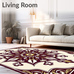 Flatwoven High Traffic Area Rug, Abstract Burst with Symmetrical Floral Motifs, Non Slip, Stain Resistant, Washable Area Rugs for Living Room, Bedroom (Brown) Overview: