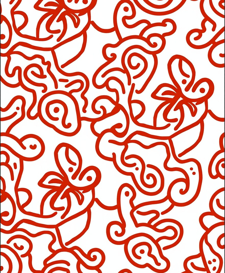 Abstract Floral Swirl with Fluid Curves and Dynamic Shapes (Red)