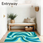 Flatwoven High Traffic Area Rug, Abstract Fluid Swirl Design Incorporating Waves and Shapes, Non Slip, Stain Resistant, Washable Area Rugs for Living Room, Bedroom (Green) Overview:
