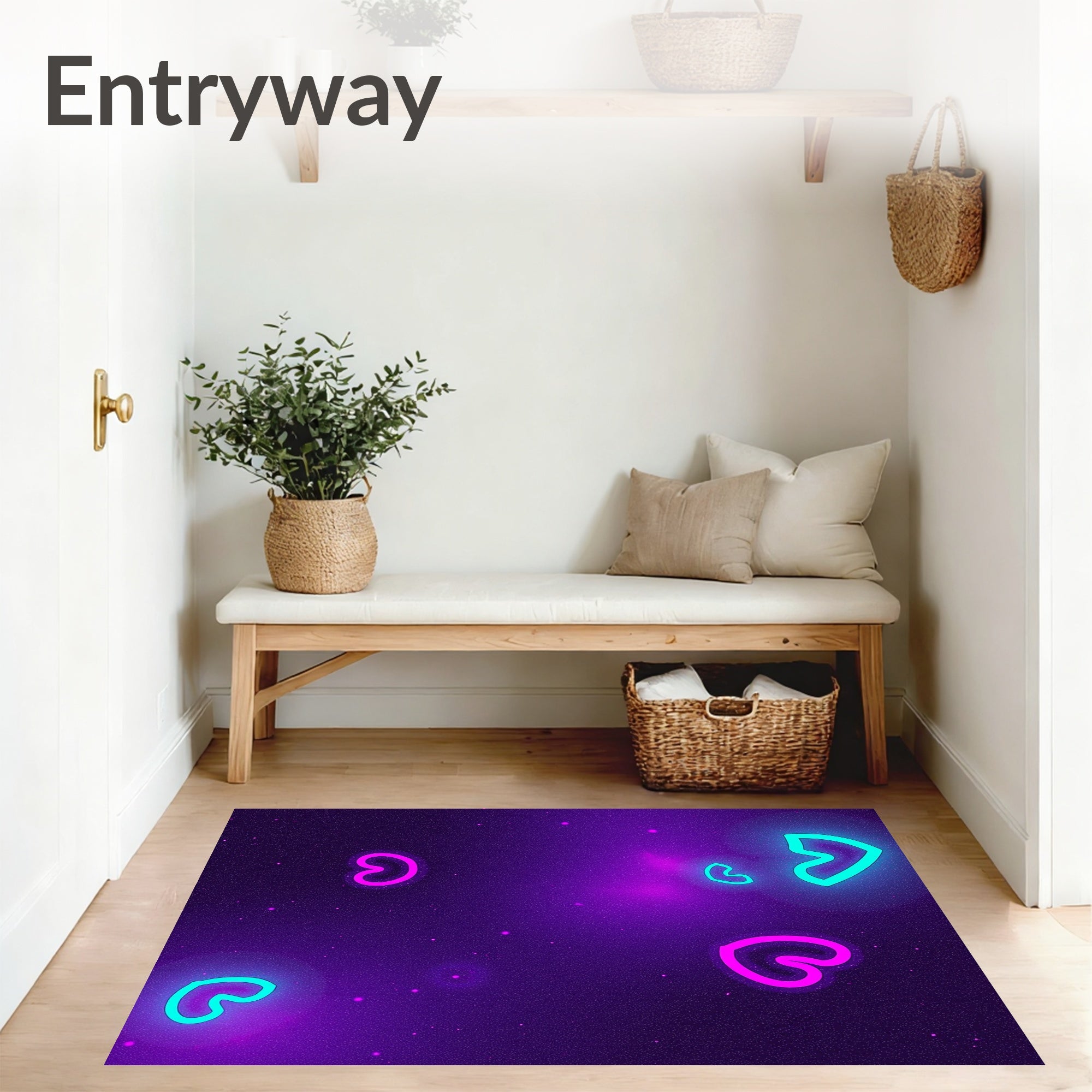 Flatwoven High Traffic Area Rug, Abstract Gaming Symbol with Cosmic Nebula Background Effects, Non Slip, Stain Resistant, Washable Area Rugs for Living Room, Bedroom (Purple) Overview: