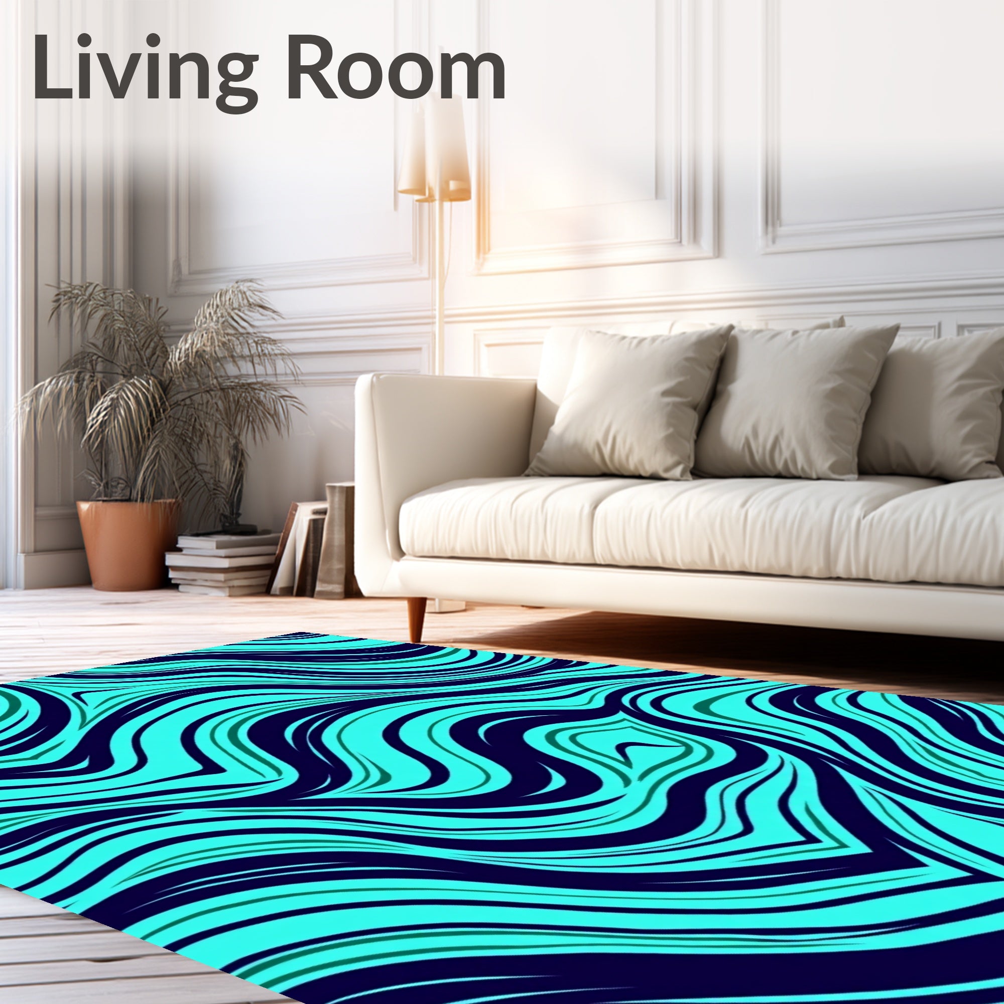 Flatwoven High Traffic Area Rug, Abstract Nautical Wave Swirl Featuring Deep Tones, Non Slip, Stain Resistant, Washable Area Rugs for Living Room, Bedroom (Cyan) Overview:
