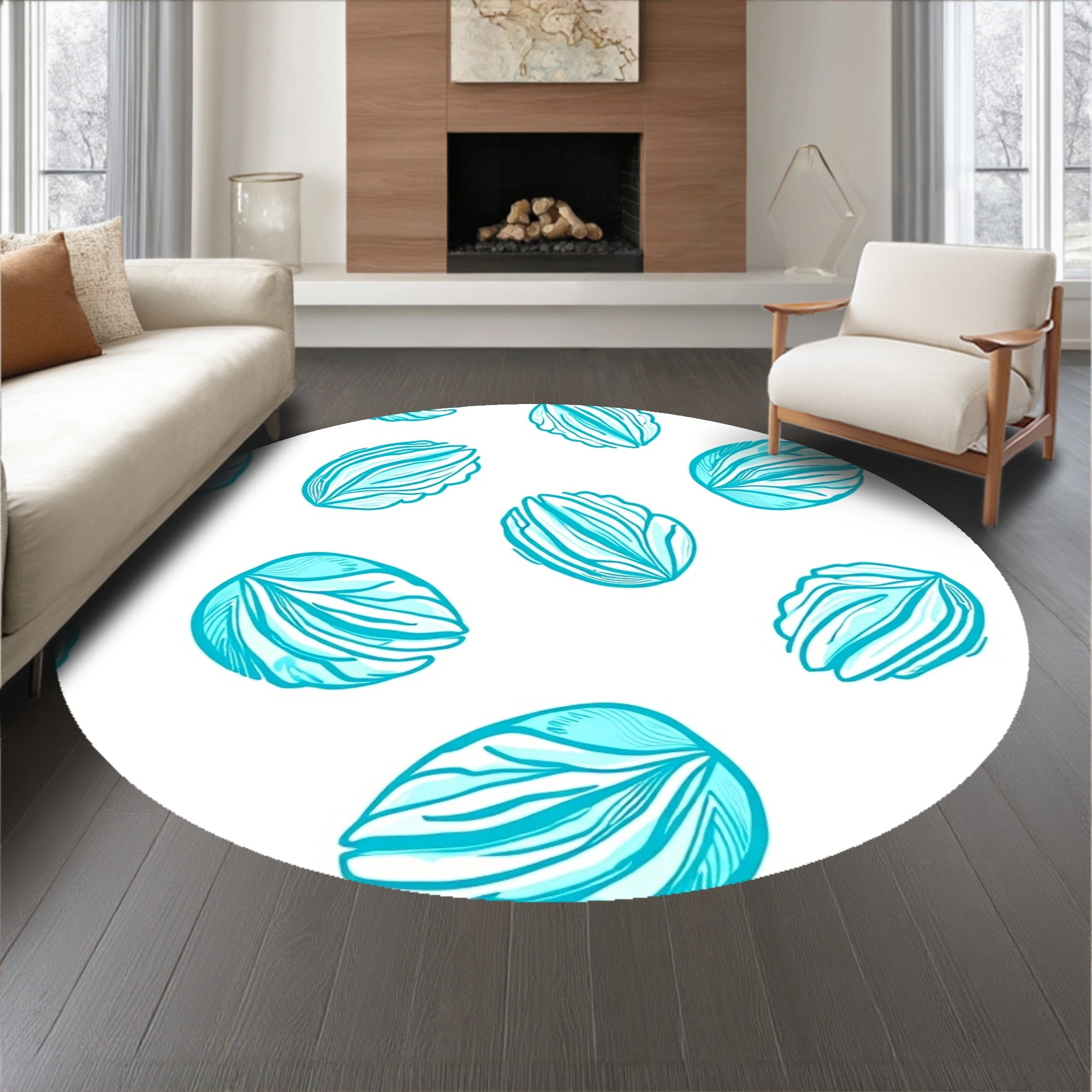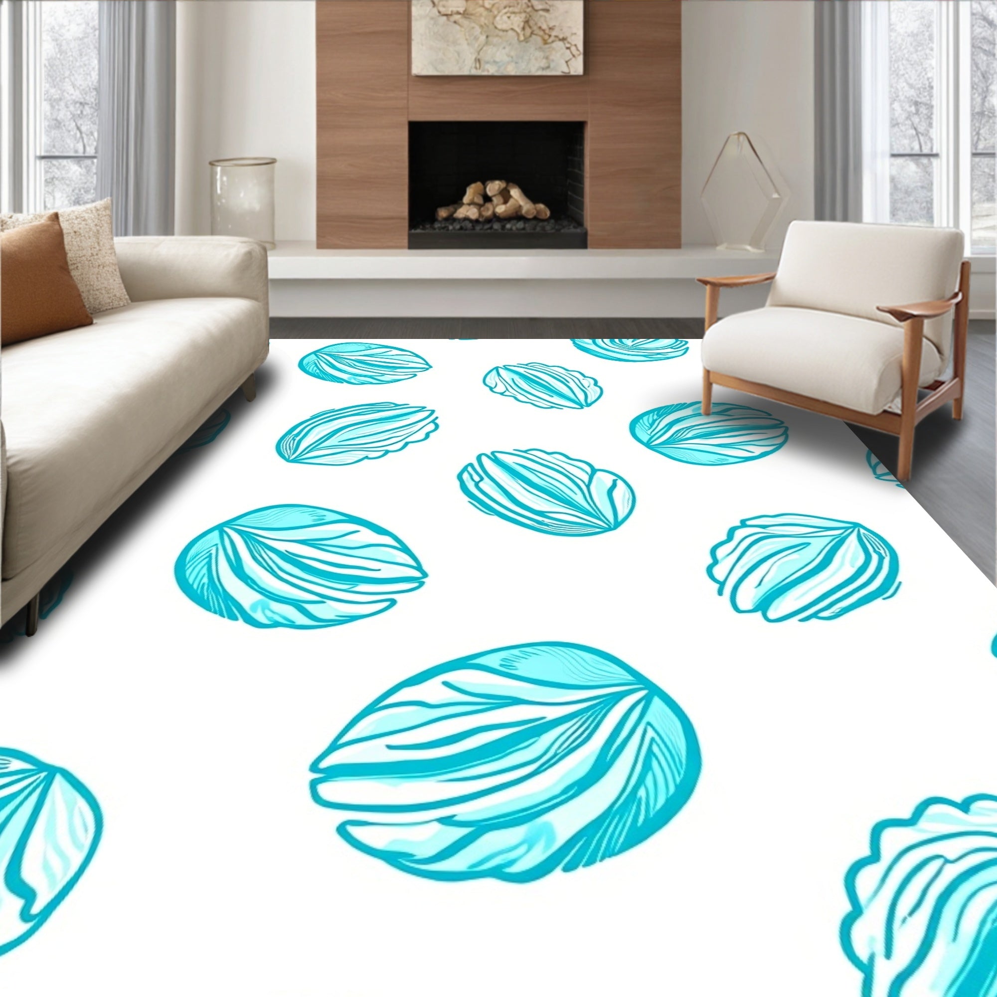 Flatwoven High Traffic Area Rug, Abstract Oceanic Shell with Flowing Motifs, Non Slip, Stain Resistant, Washable Area Rugs for Living Room, Bedroom (Blue) Overview: