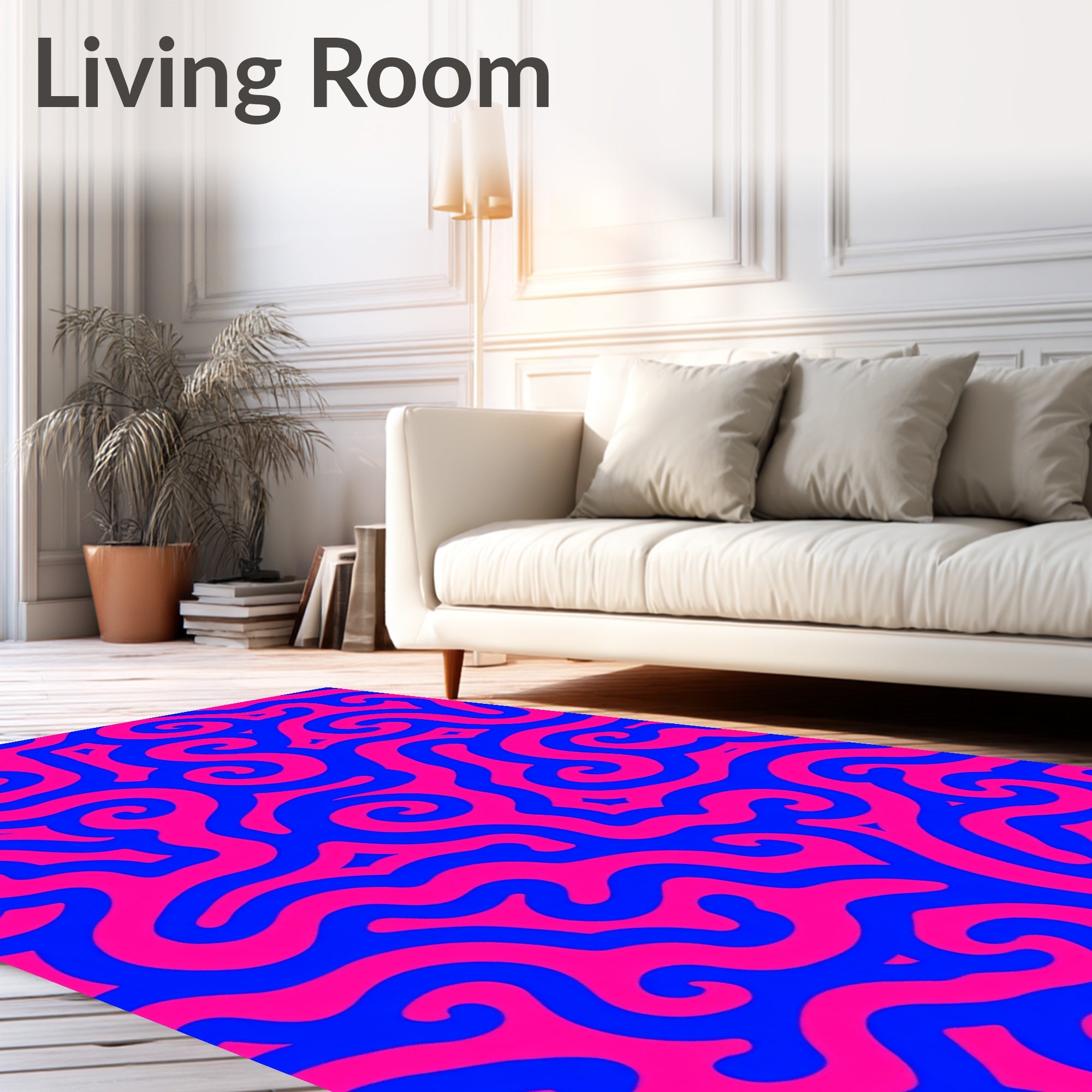 Flatwoven High Traffic Area Rug, Abstract Swirl Mosaic Featuring Spiraling Shapes and Fluid Motifs, Non Slip, Stain Resistant, Washable Area Rugs for Living Room, Bedroom (Pink) Overview:
