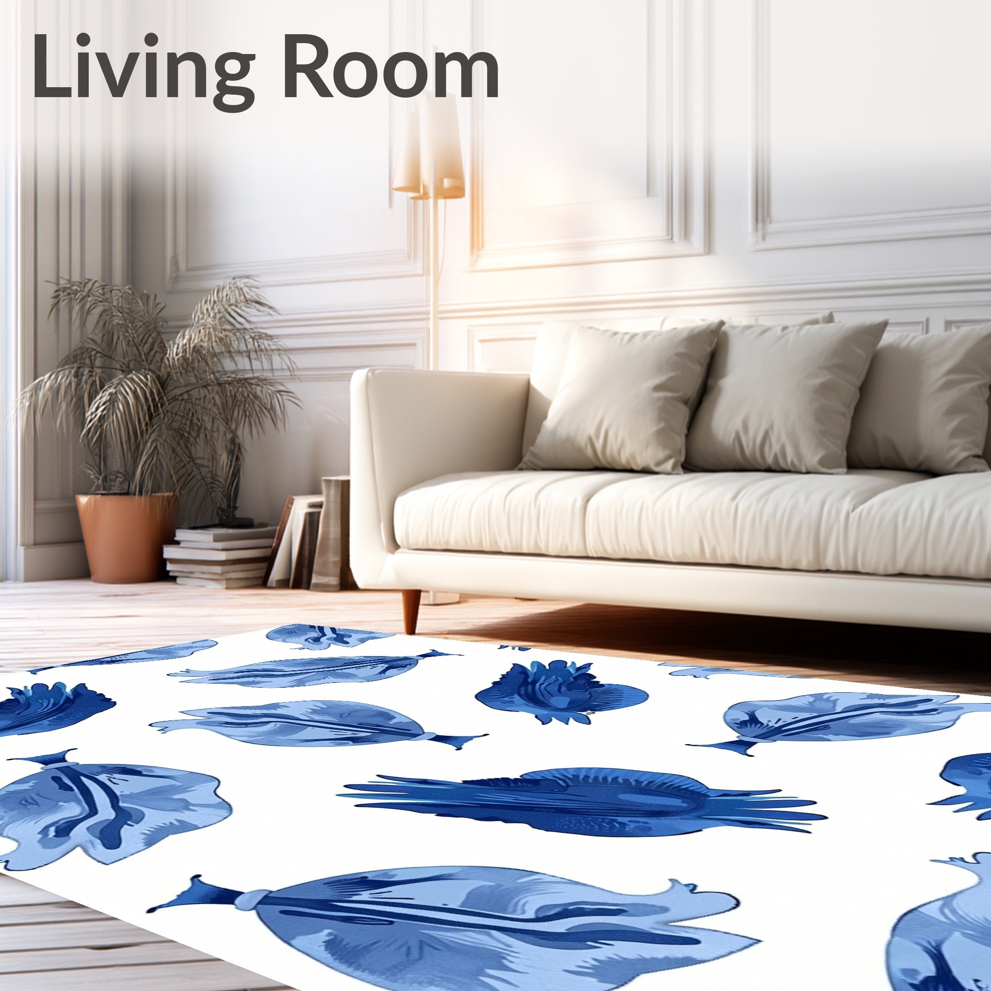 Flatwoven High Traffic Area Rug, Abstract Watercolor Splash Artisan Brushstroke, Non Slip, Stain Resistant, Washable Area Rugs for Living Room, Bedroom (Blue) Overview:
