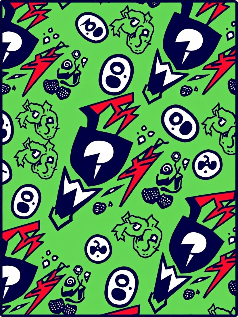 Adventure Crest Interlocking Motif with Bold Lightning and Symbols (Green)