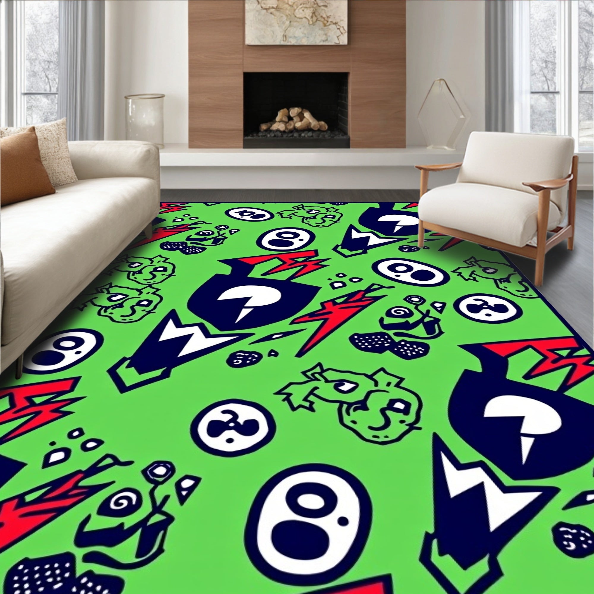 Flatwoven High Traffic Area Rug, Adventure Crest Interlocking Motif with Bold Lightning and Symbols, Non Slip, Stain Resistant, Washable Area Rugs for Living Room, Bedroom (Green) Overview: