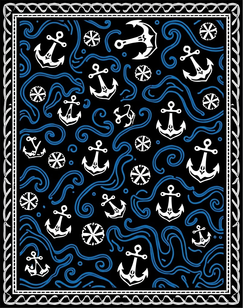 Anchor Nautical Wave with Compass Rose Design (Black)