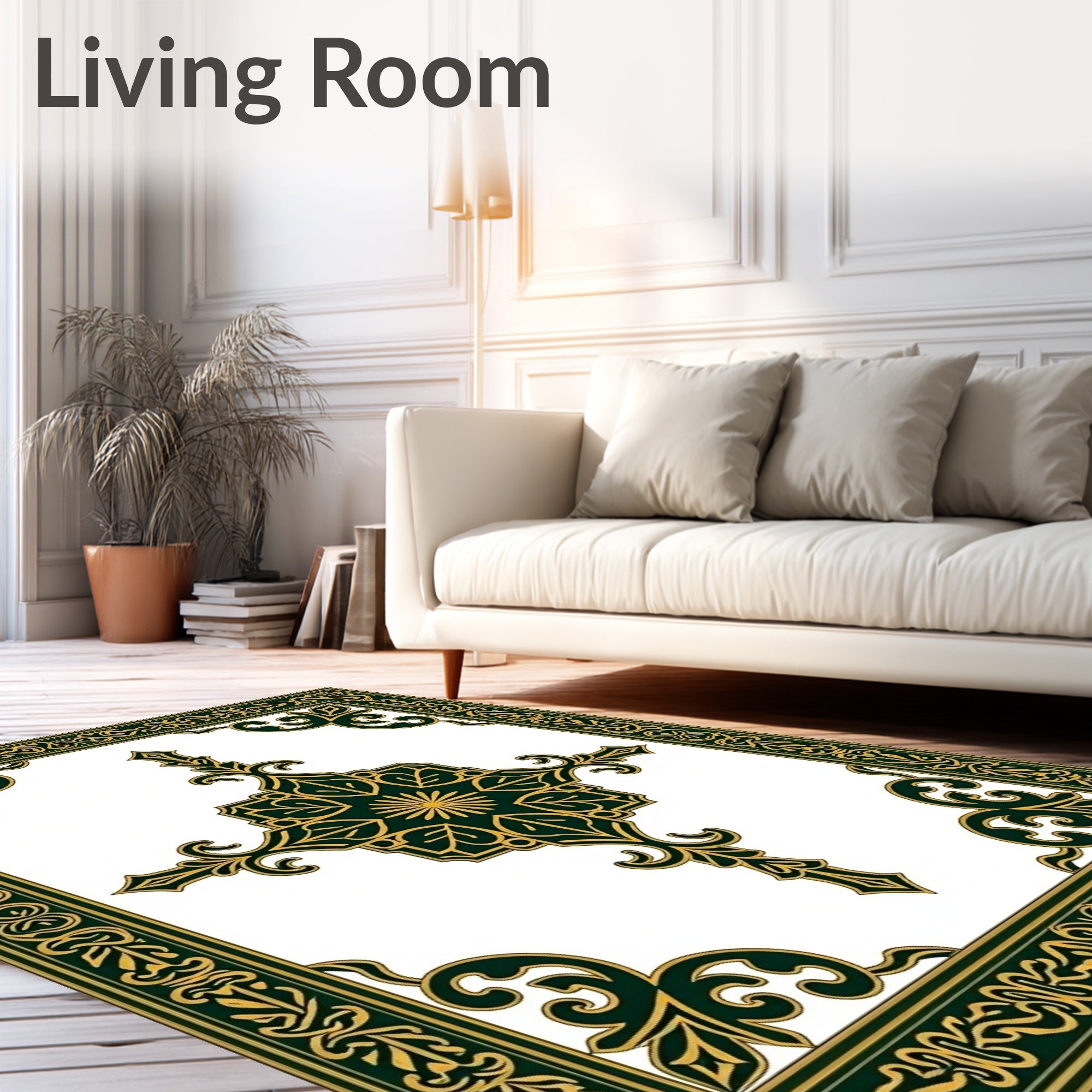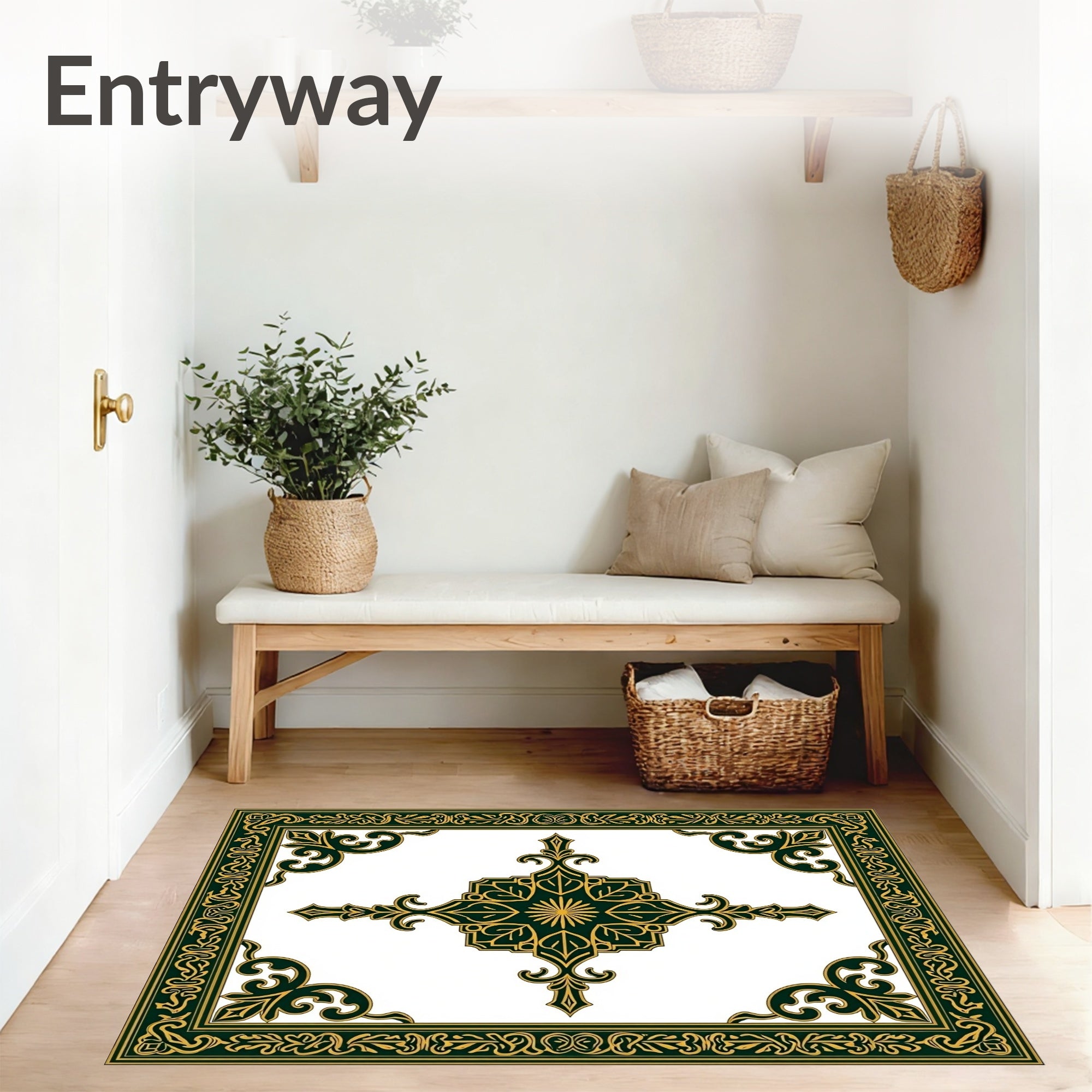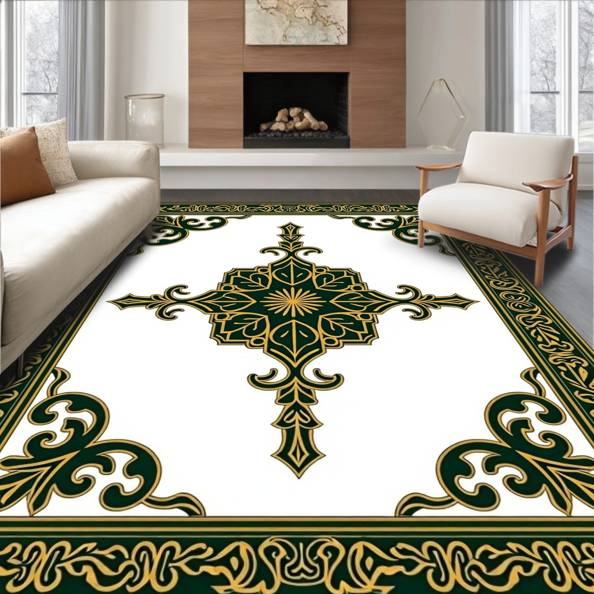Flatwoven High Traffic Area Rug, Andalusian Motif with Interlocking Vine Scrolls and Floral Medallion, Non Slip, Stain Resistant, Washable Area Rugs for Living Room, Bedroom (Green) Overview:
