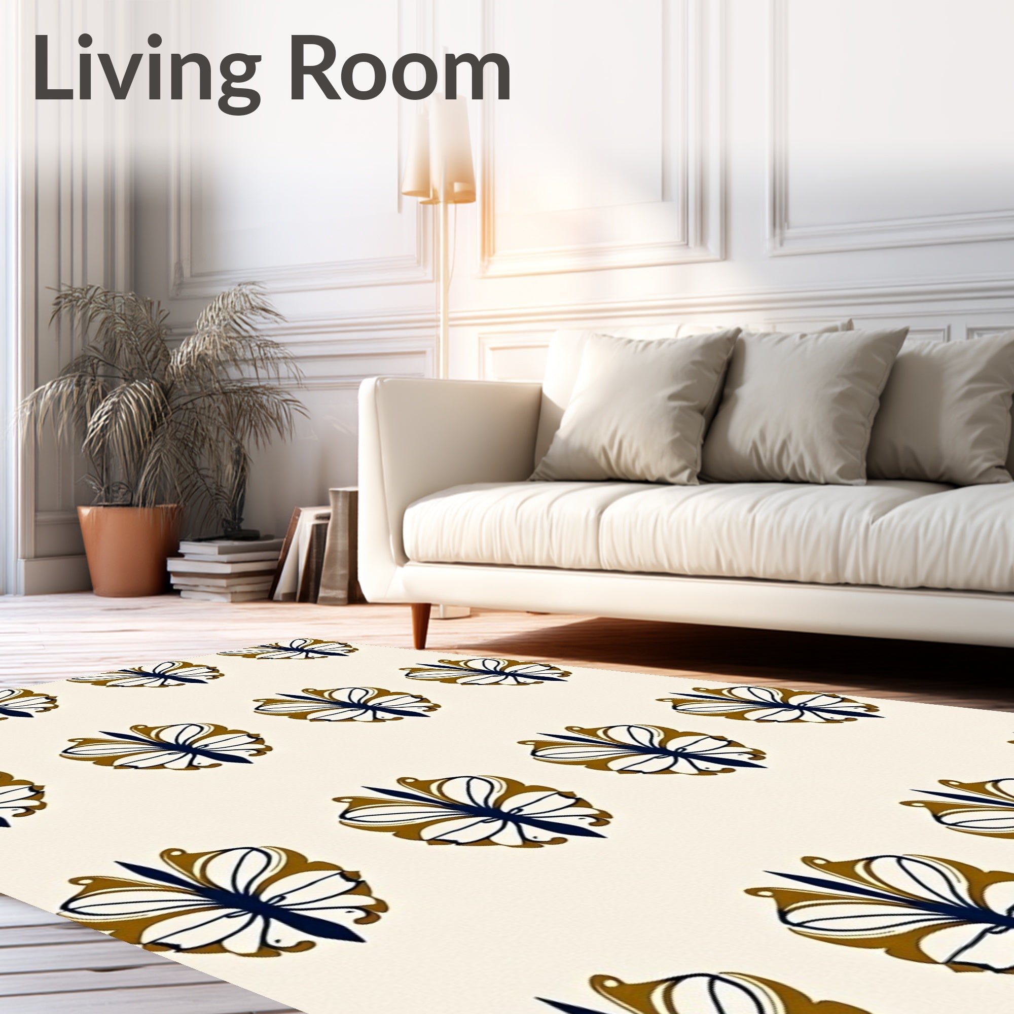 Flatwoven High Traffic Area Rug, Art Inspired Fan with Gentle Metallic Highlights, Non Slip, Stain Resistant, Washable Area Rugs for Living Room, Bedroom (Ivory) Overview: