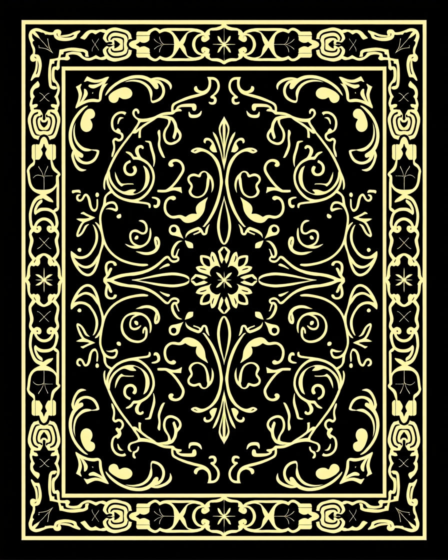 Art Nouveau Inspired with Curving Floral Vines and Abstract Leaf Shapes (Black)