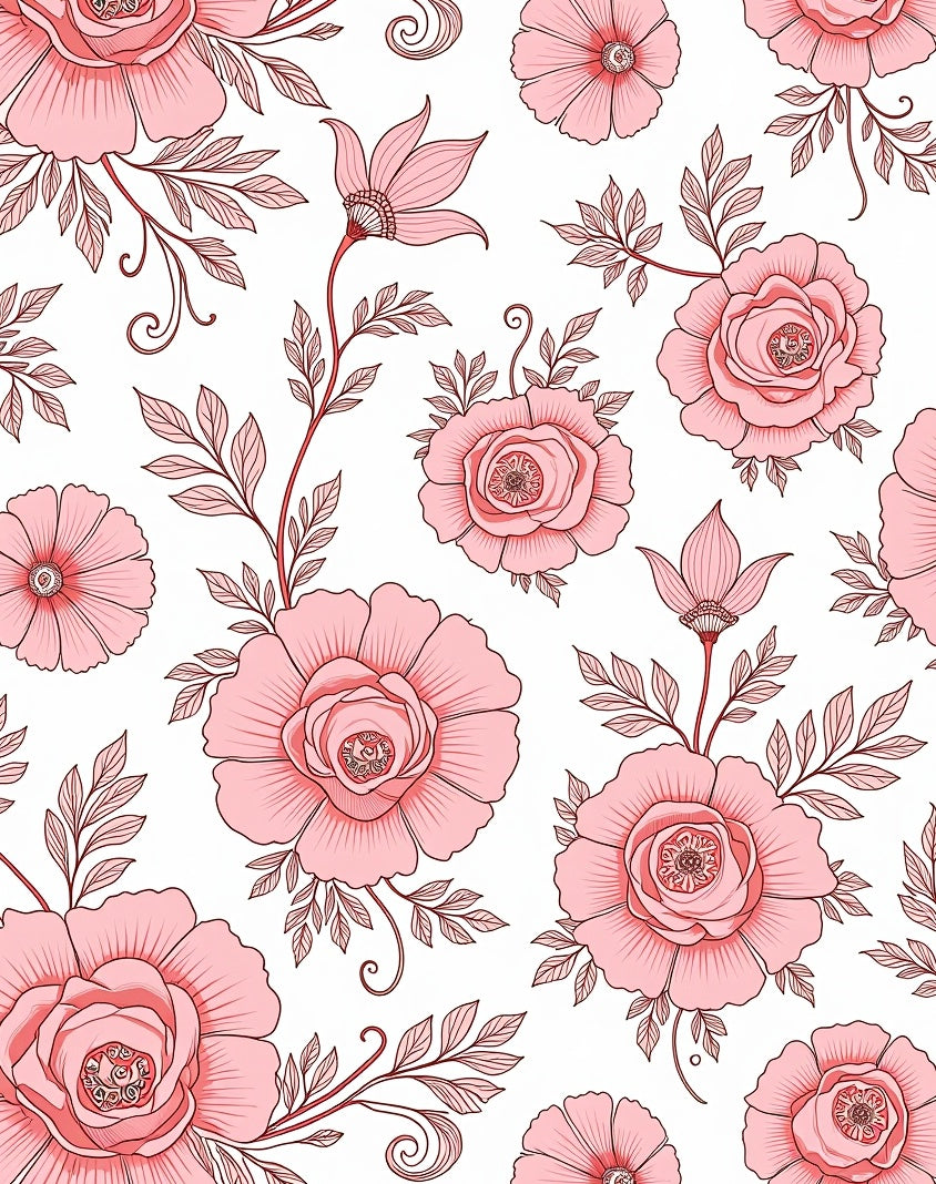 Art Nouveau Peony Reverie with Flowing Floral Scrolls and Ornate Botanic Details (Pink)