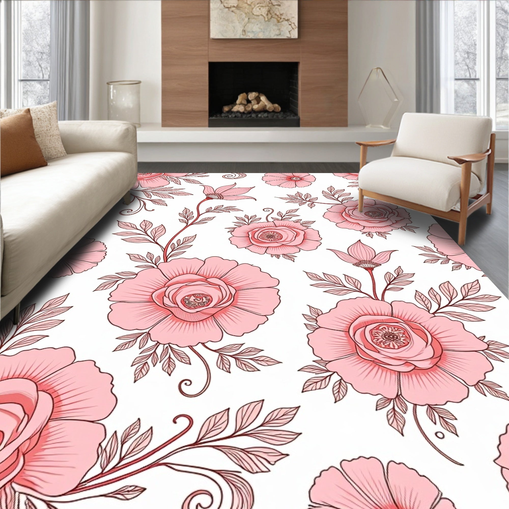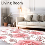 Flatwoven High Traffic Area Rug, Art Nouveau Peony Reverie with Flowing Floral Scrolls and Ornate Botanic Details, Non Slip, Stain Resistant, Washable Area Rugs for Living Room, Bedroom (Pink) Overview: