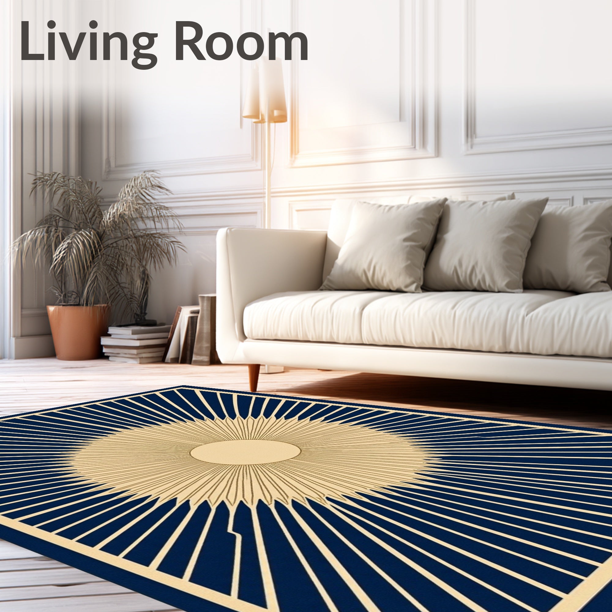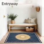 Art Sunburst Radiating Lines Modern Floor Covering (Blue)